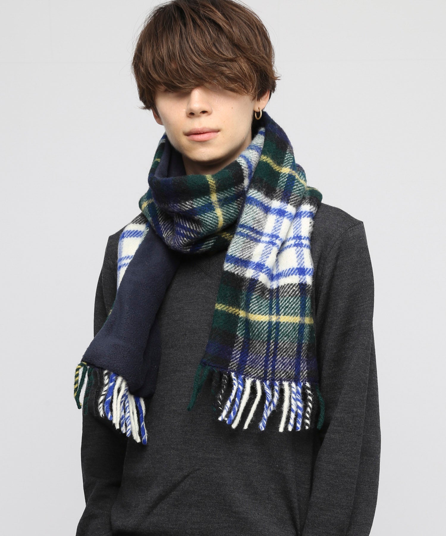 チェック柄仕立てにすることで巻いた際にコーディネートにアクセントをプラス。