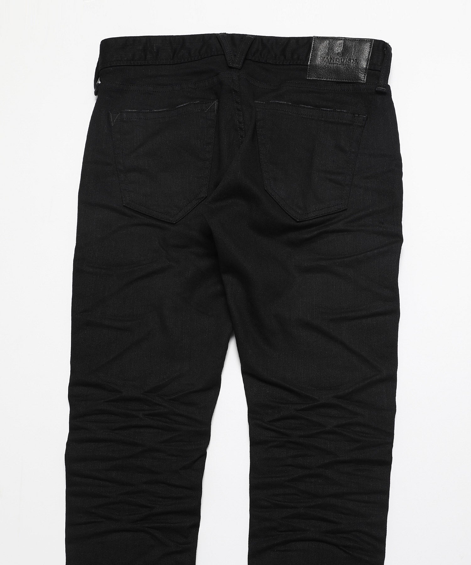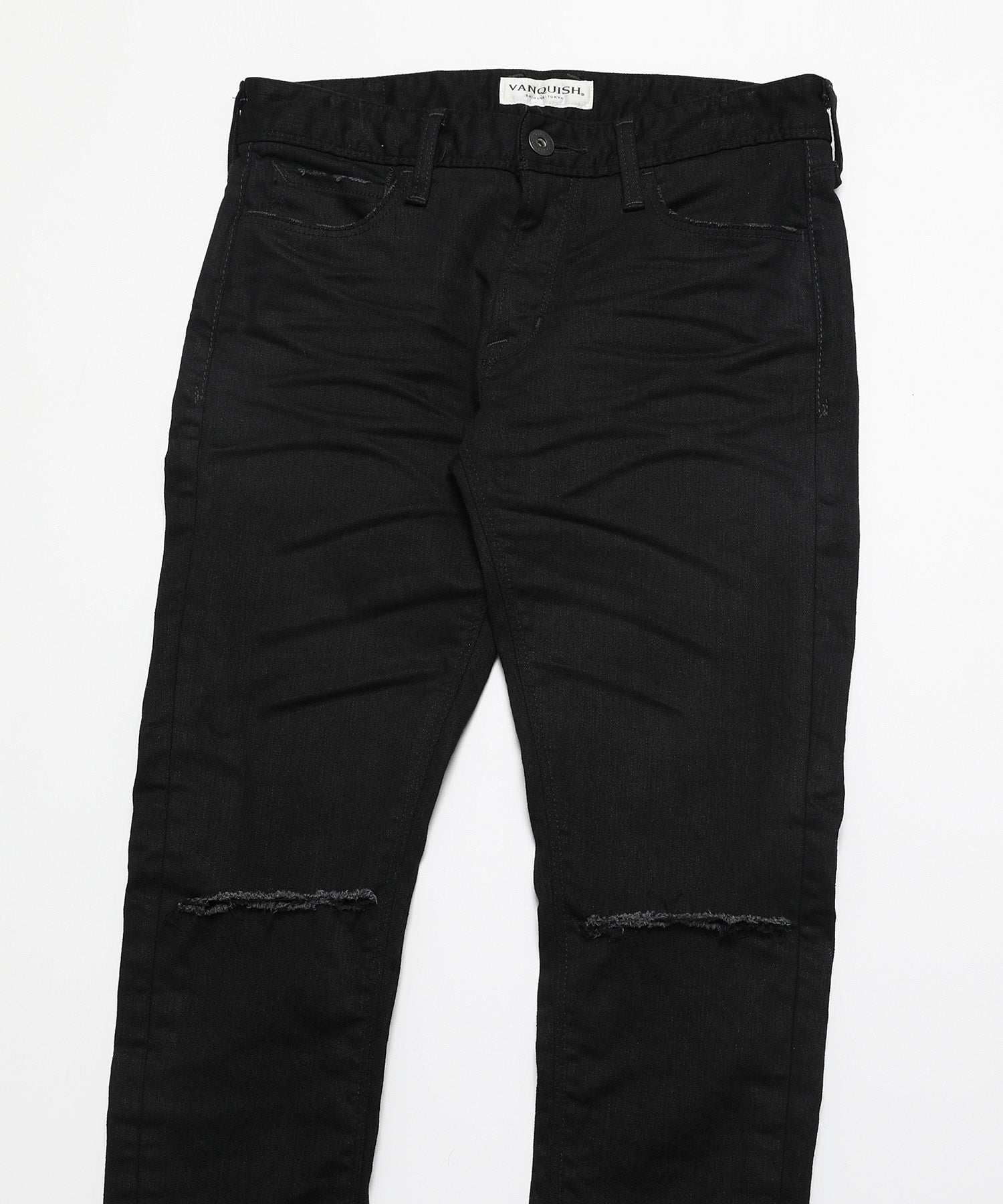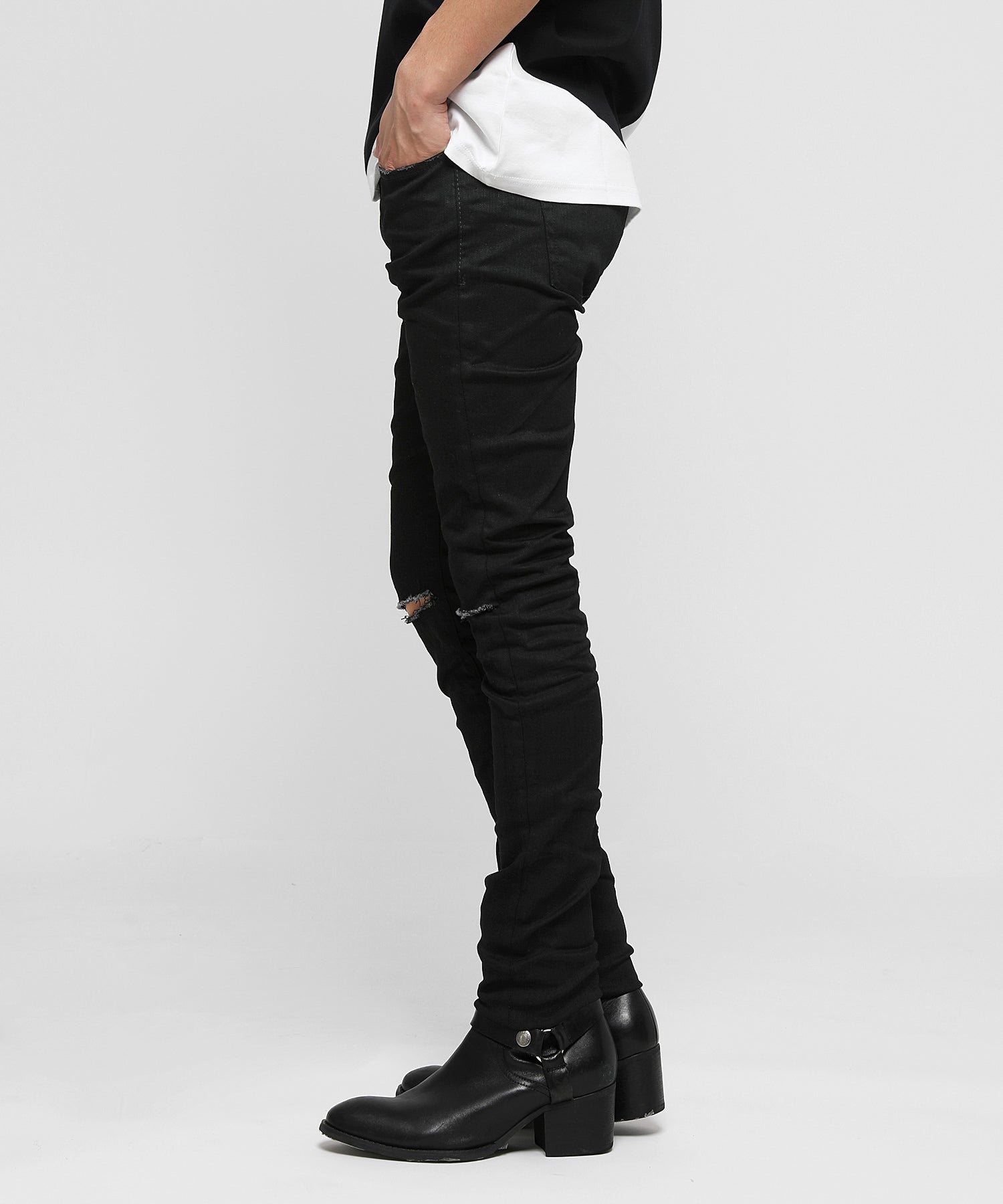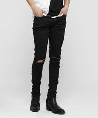 Knee Crush Power Stretch Kneedle skinny Black denim Pants[VJP2229]