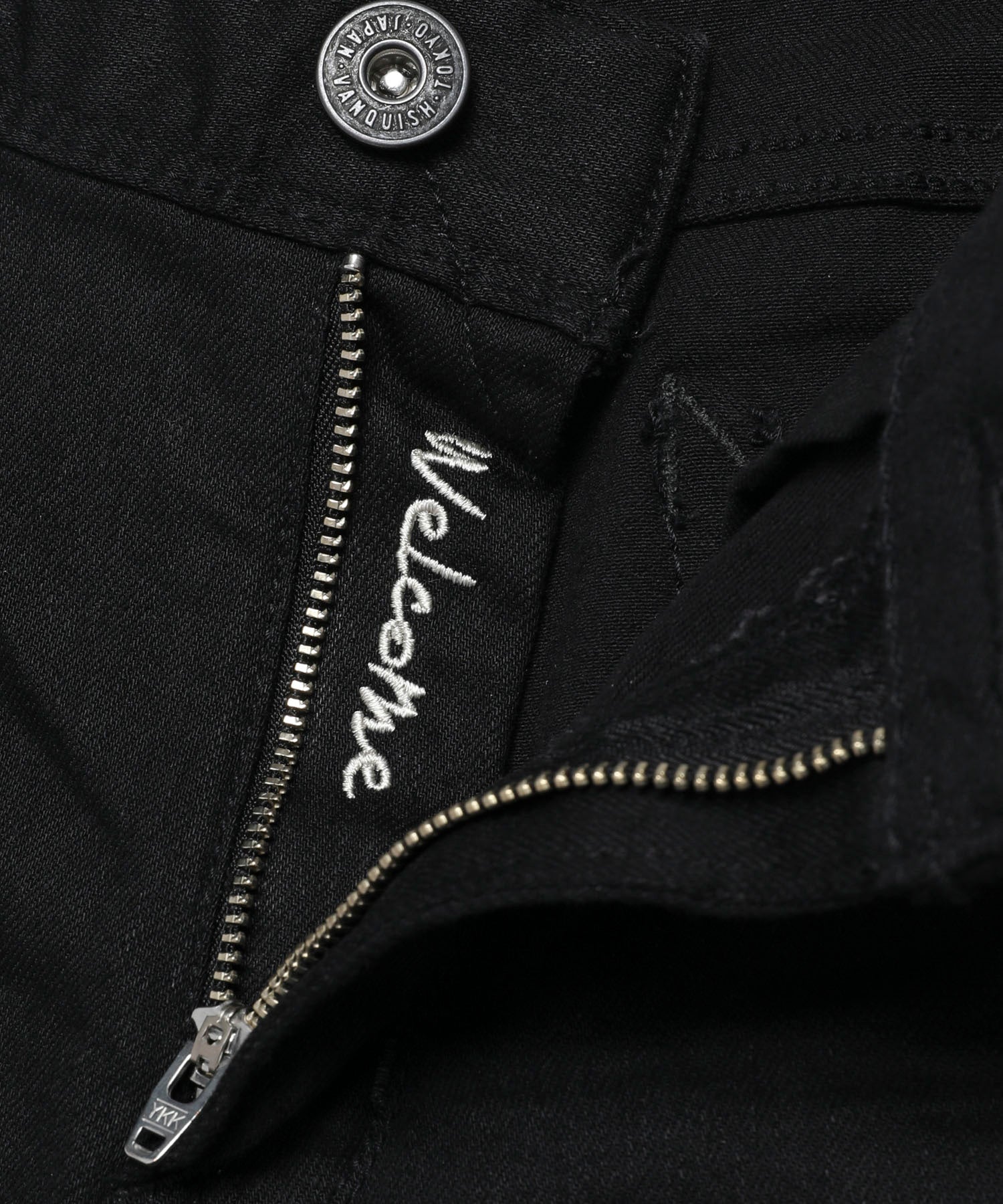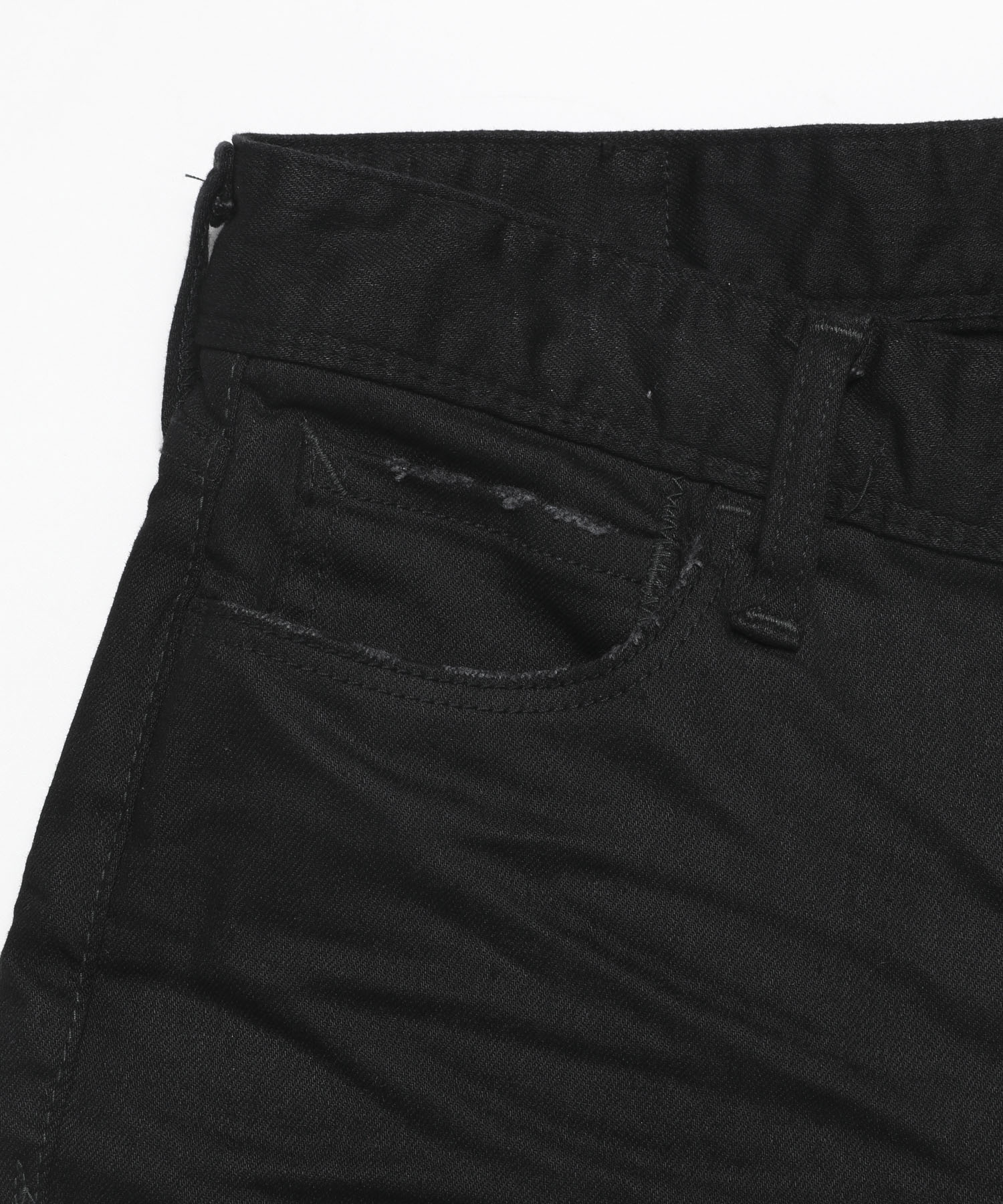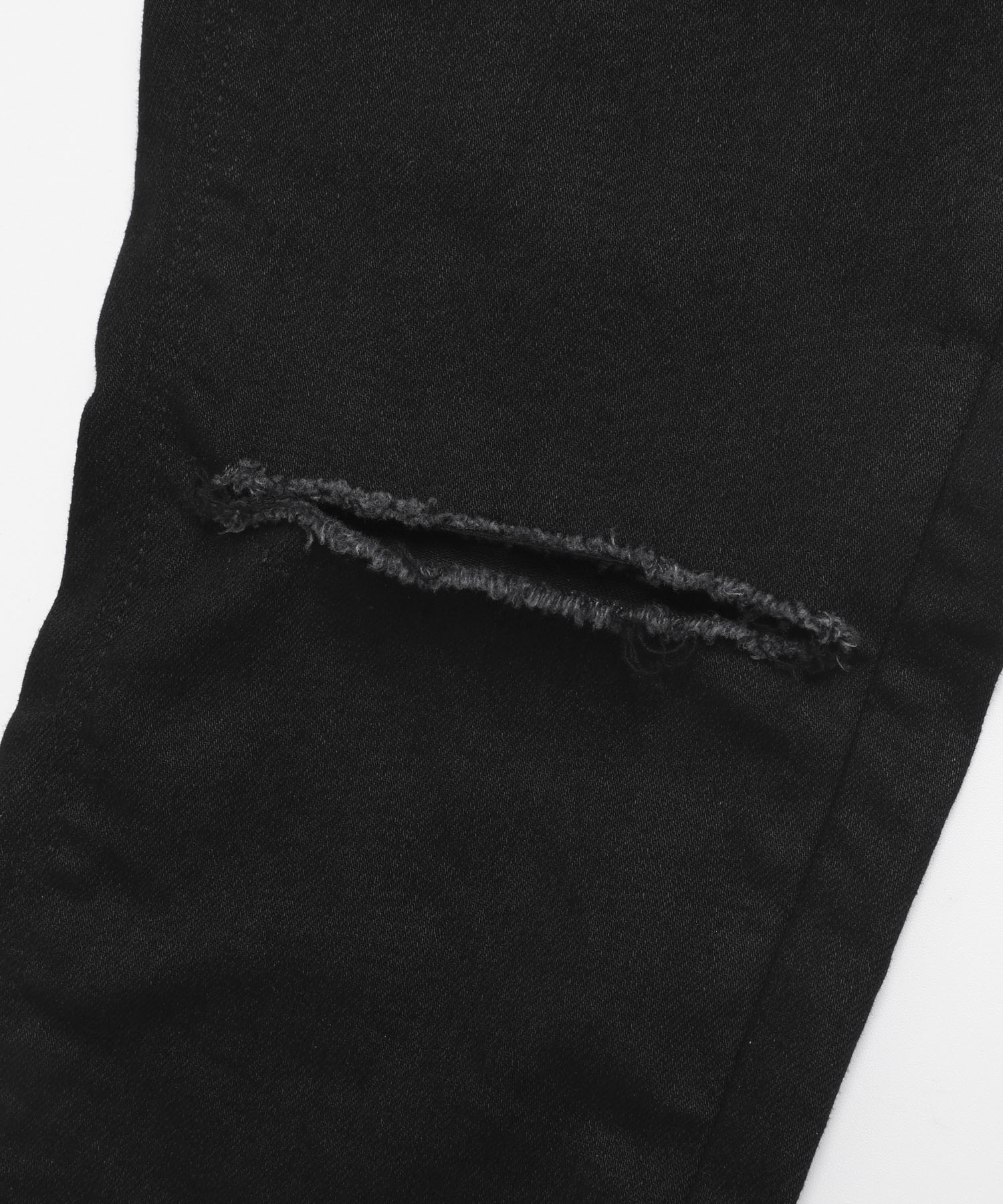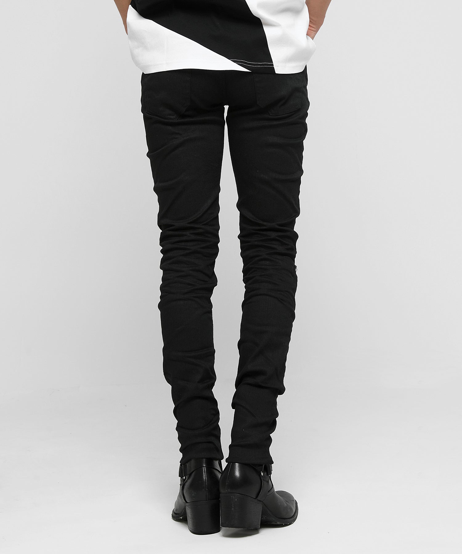 立体的なヒゲ加工とダメージが特徴的なスキニーパンツ。