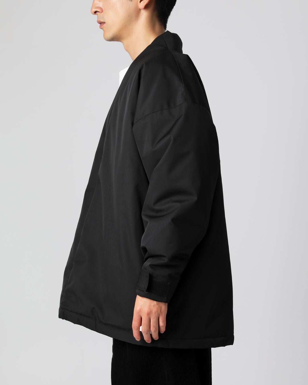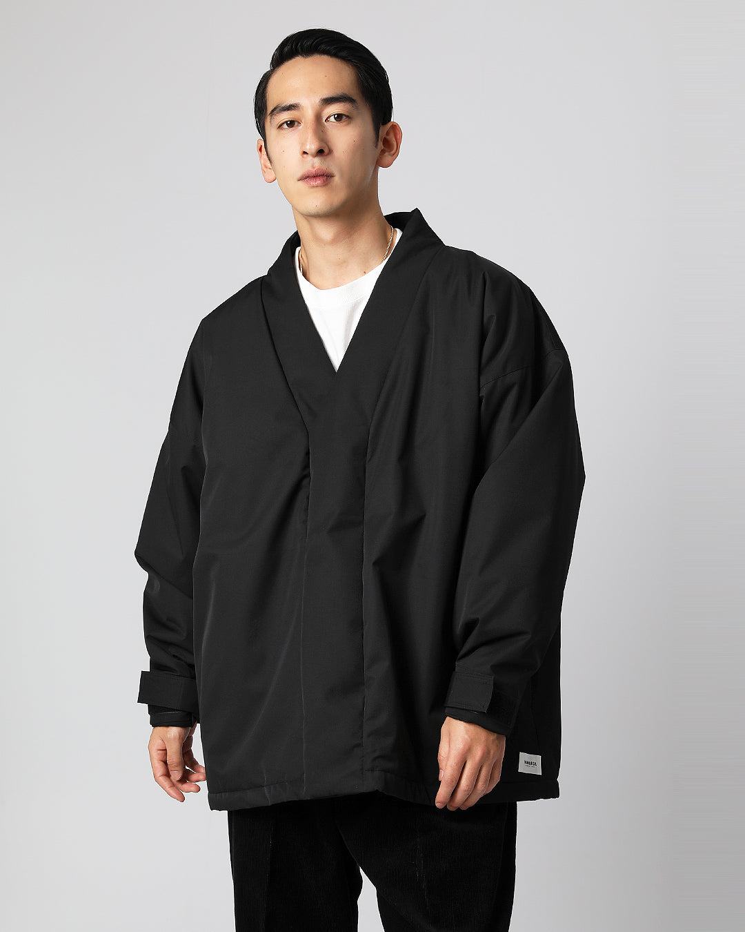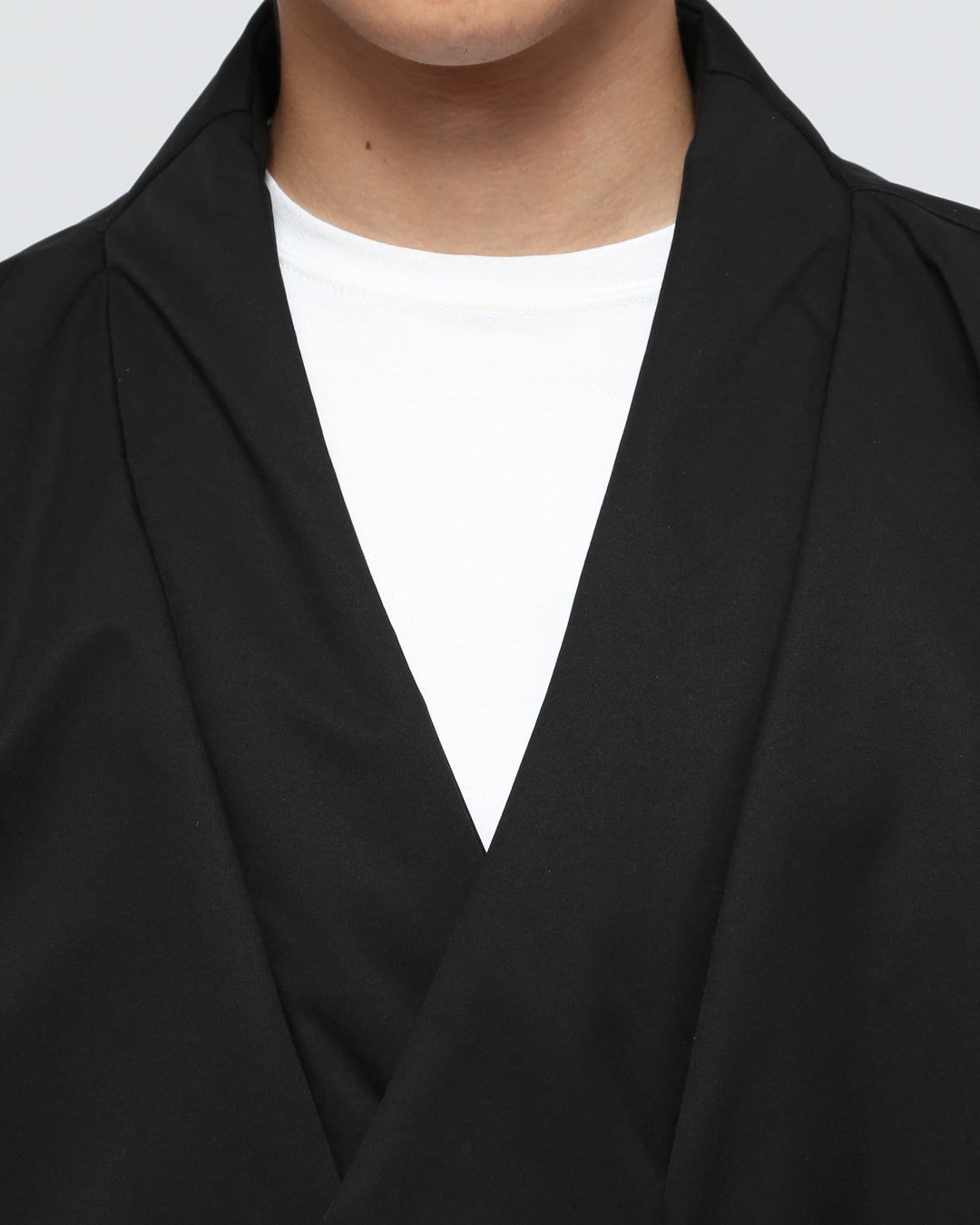 ジャケットをベースに袢纏に落とし込んだ一着。シンプルな無地のデザインでコーディネートに取り入れやすい一着です。