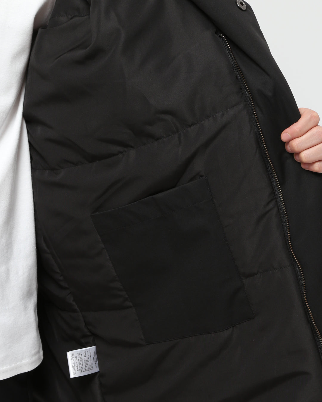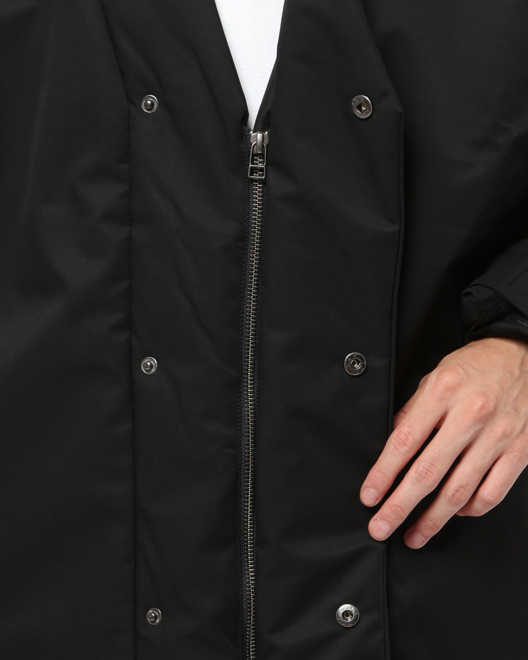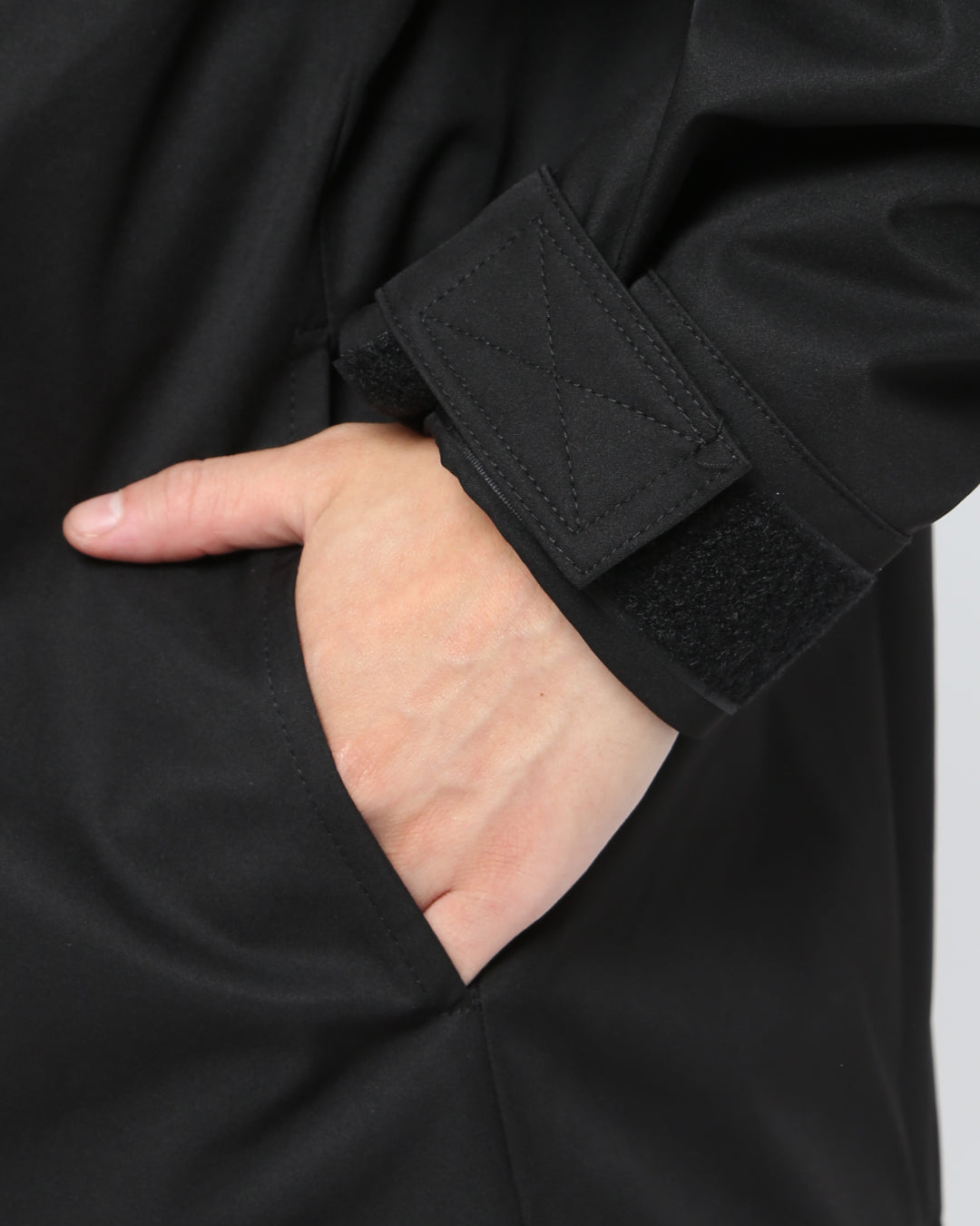 ジップとボタンを二重で閉めることで防寒性もあり、内ポケットをつけることで機能面も配慮。