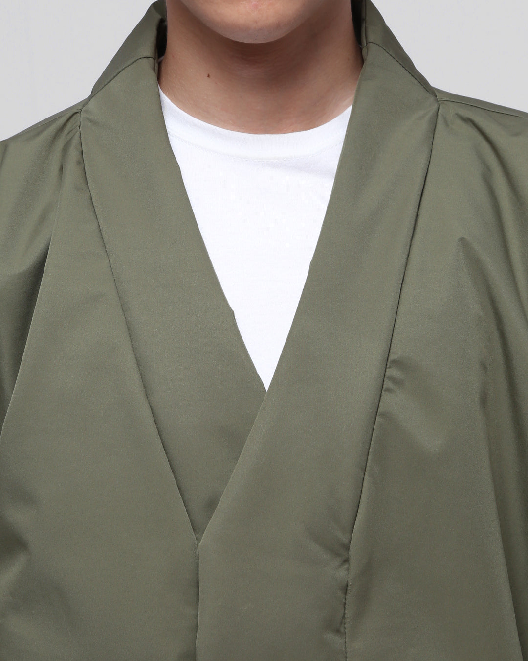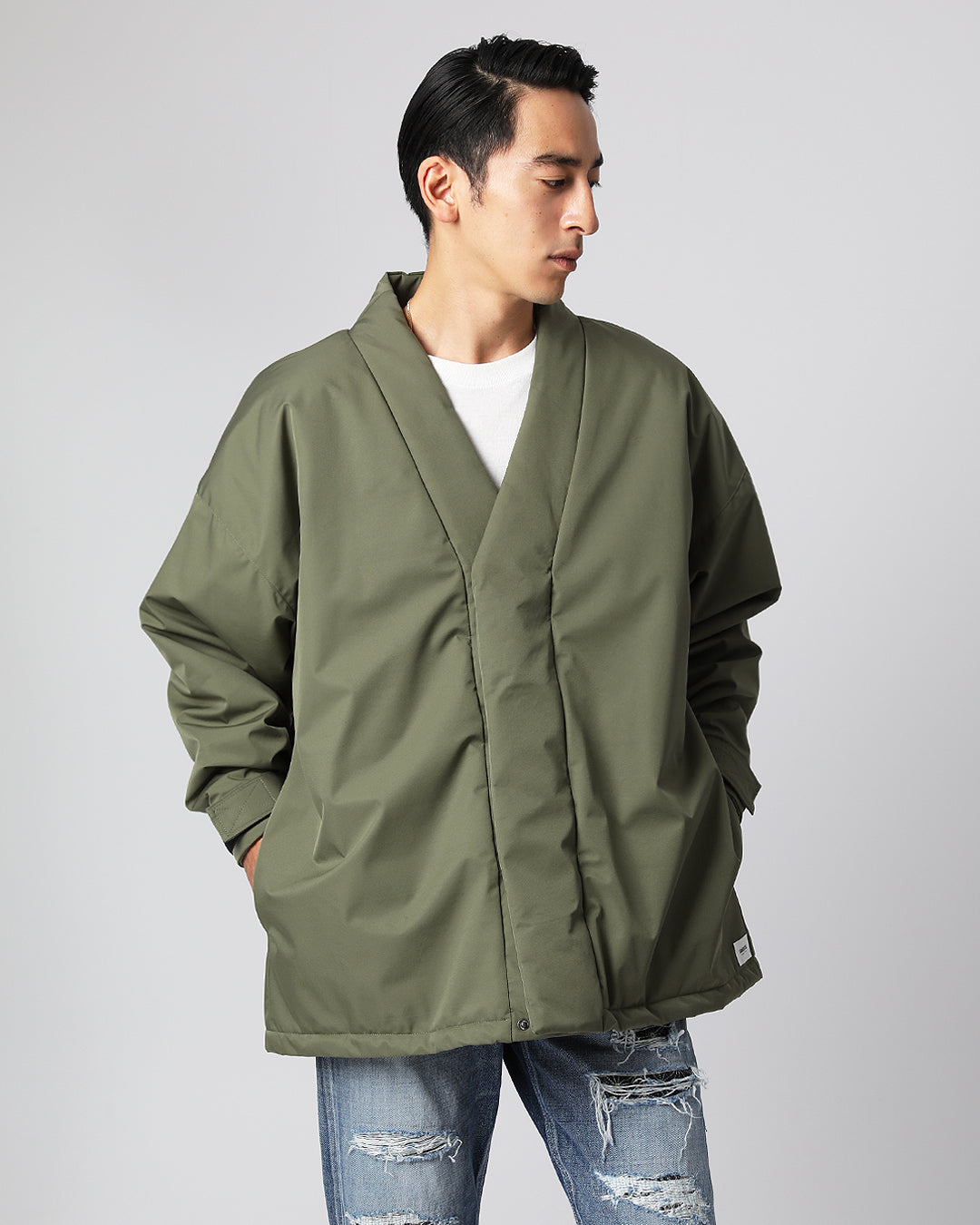 ジャケットをベースに袢纏に落とし込んだ一着。シンプルな無地のデザインでコーディネートに取り入れやすい一着です。