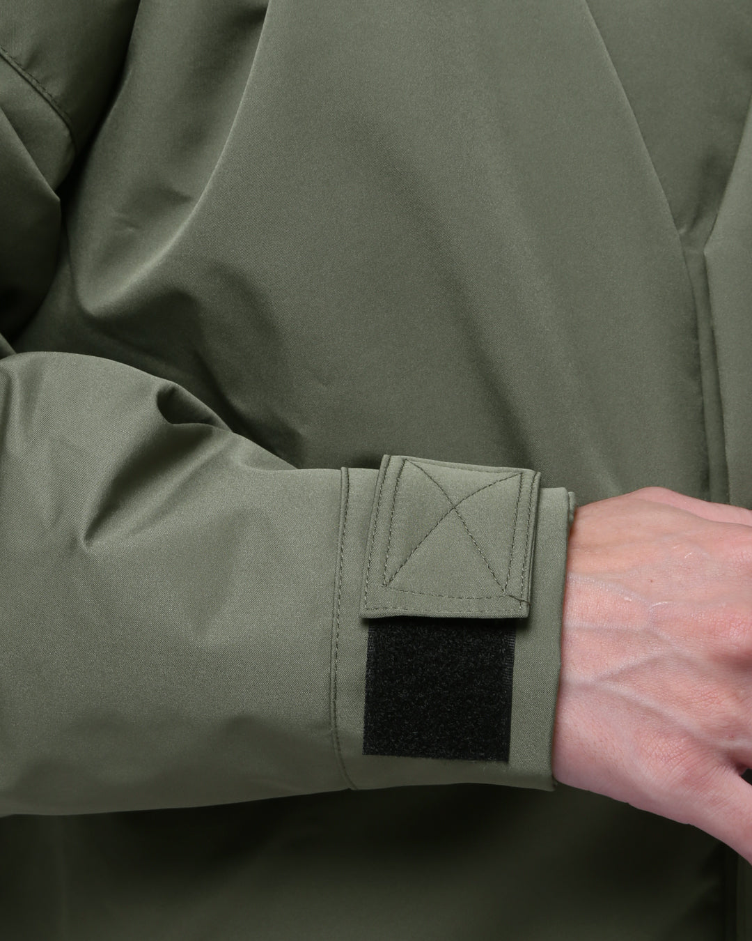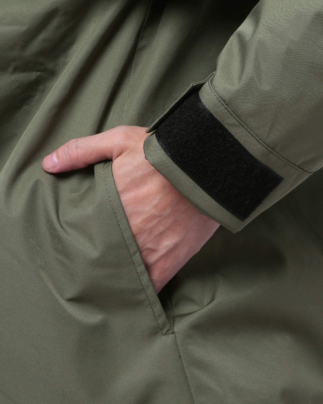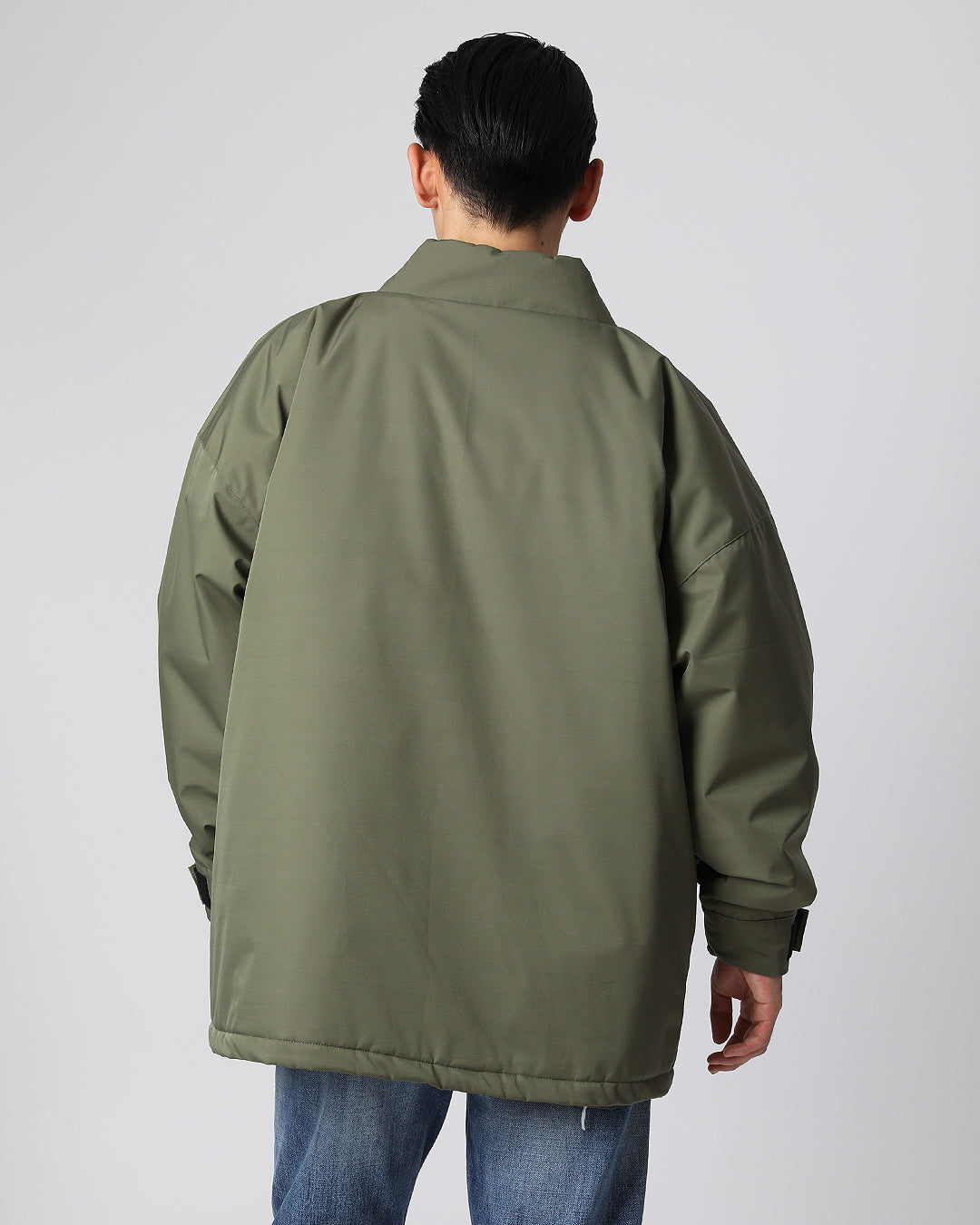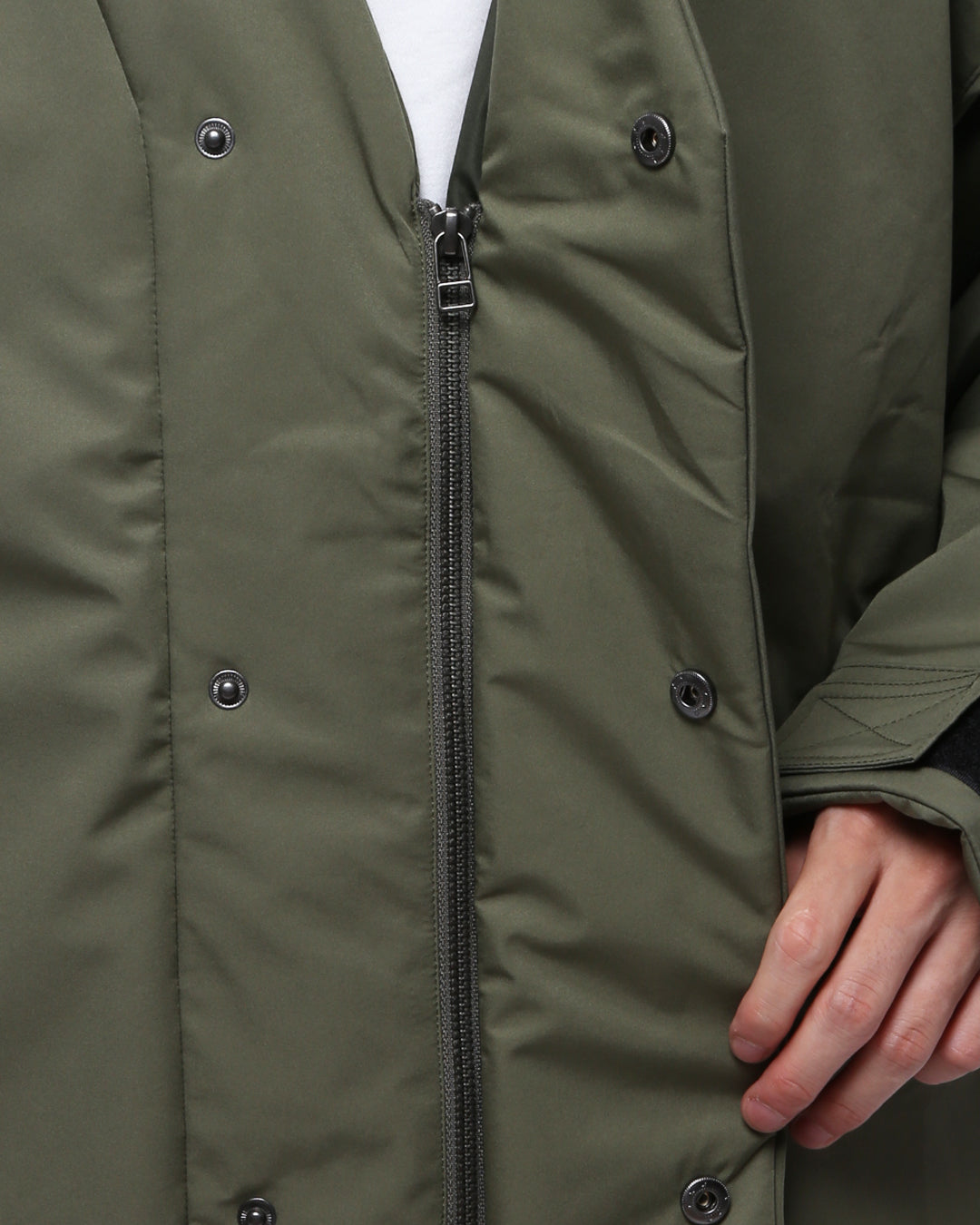 ジップとボタンを二重で閉めることで防寒性もあり、内ポケットをつけることで機能面も配慮。