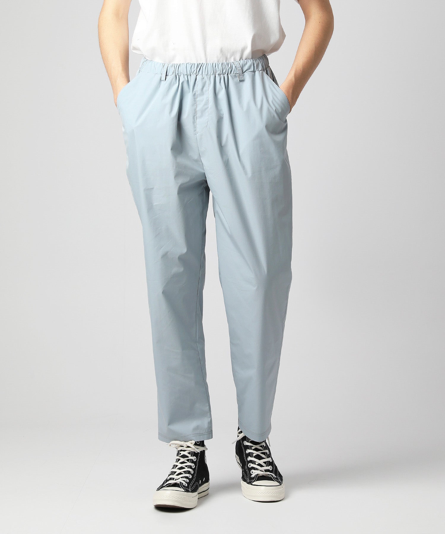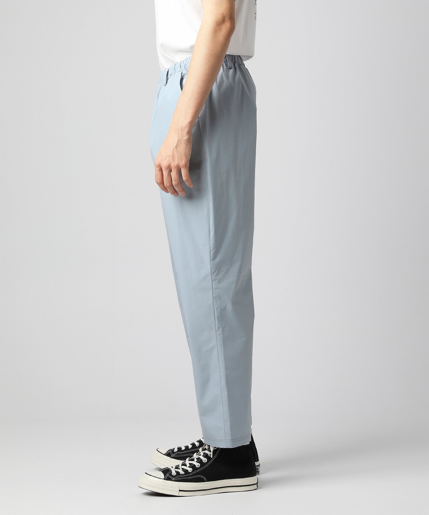 撥水加工が施されたアンクル丈のイージーパンツ。