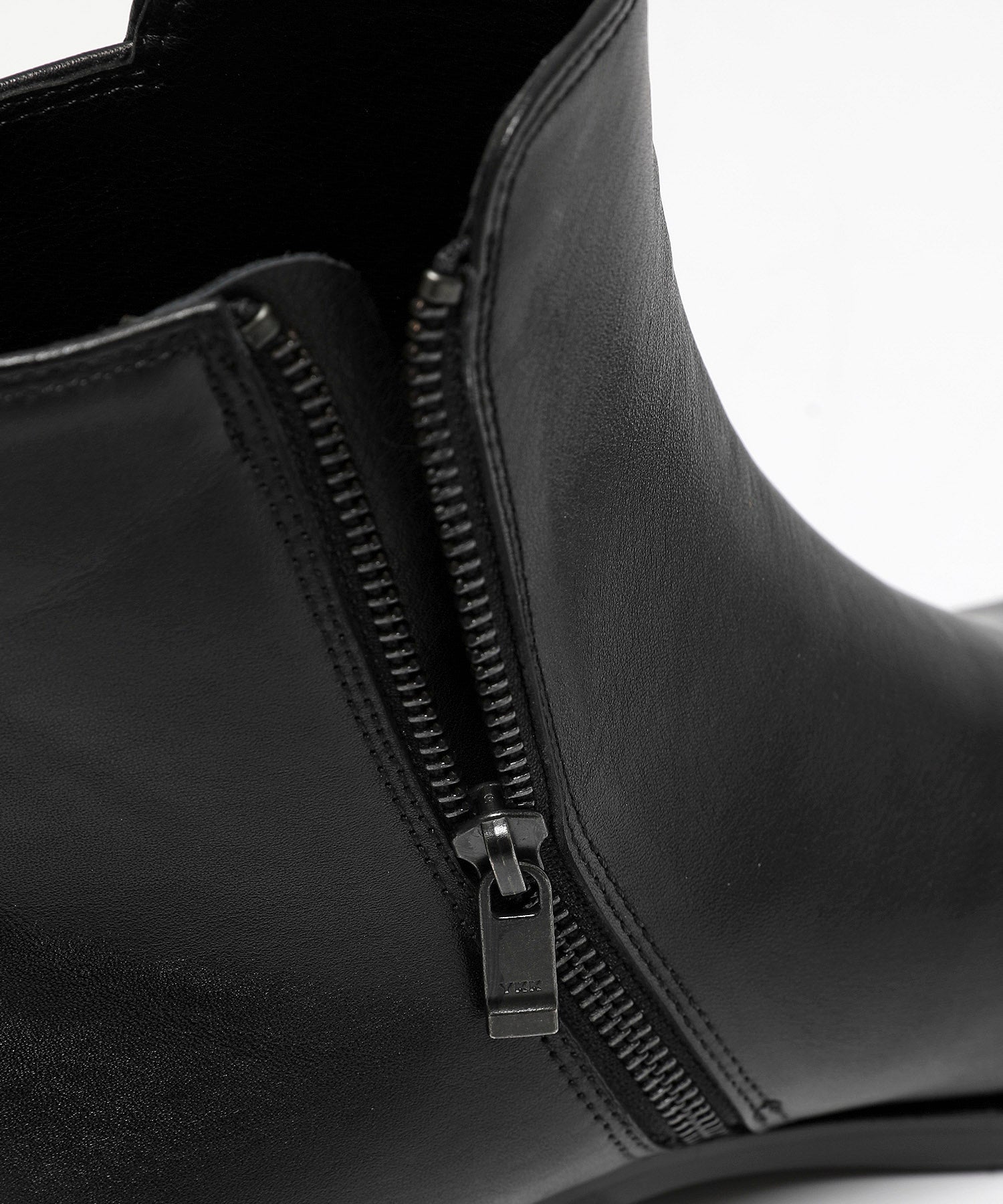上質で上品な印象のカウレザーを採用したブーツ。インサイドにはジップ付きで脱ぎ履きがし易いよう配慮。サイドにブランドロゴがさりげなく刻印されているのもポイント。カラー/ベージュは毛足が短いスウェードを採用しているのもポイント。