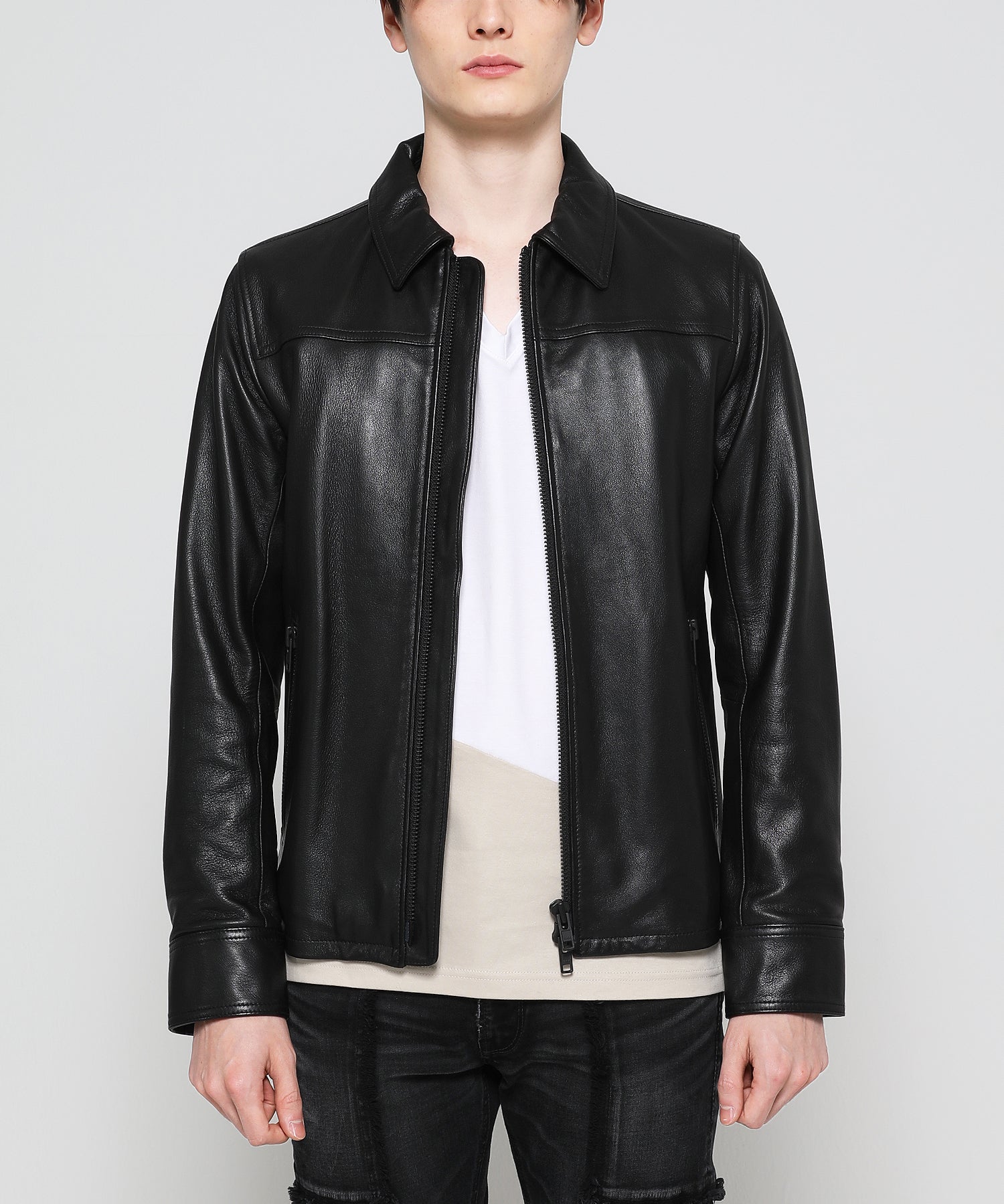 ※レザーならではの質感・風合いを長く維持する為、専用のオイルをコーティングしています。運搬の途上など、このオイルが下げ札に付着し、札が汚れている場合がありますが、製品自体の品質には一切影響はございません。また、特殊な染めの工程を経ている為、一点一点若干風合いが異なります。この為、色みが写真とやや異なる場合がございます。予めご了承下さい。汗や摩擦等により、他の衣類に色移りする場合がございます。また、保管の際は、照明や日光による日焼けにご注意ください。