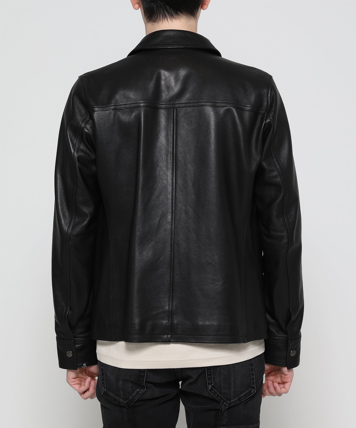 柔らかく着心地の良いラムレザーを使用しトラッカージャケットの型で仕立てた一着。シボがなく非常に滑らかな質感でモチっとした柔らかい感触に加え軽やかな仕上がりが特徴的で、着心地良好な一着。シンプルなデザインで着回し力も高く、さまざまなスタイルに活用できるアイテムです。
