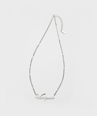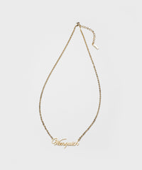 トップに筆記体のロゴプレートを取り付けたネックレス。細めのチェーンながらも付けた際に鎖骨辺りでトップがくるような絶妙なサイズ設定でワンポイントとしても最適です。