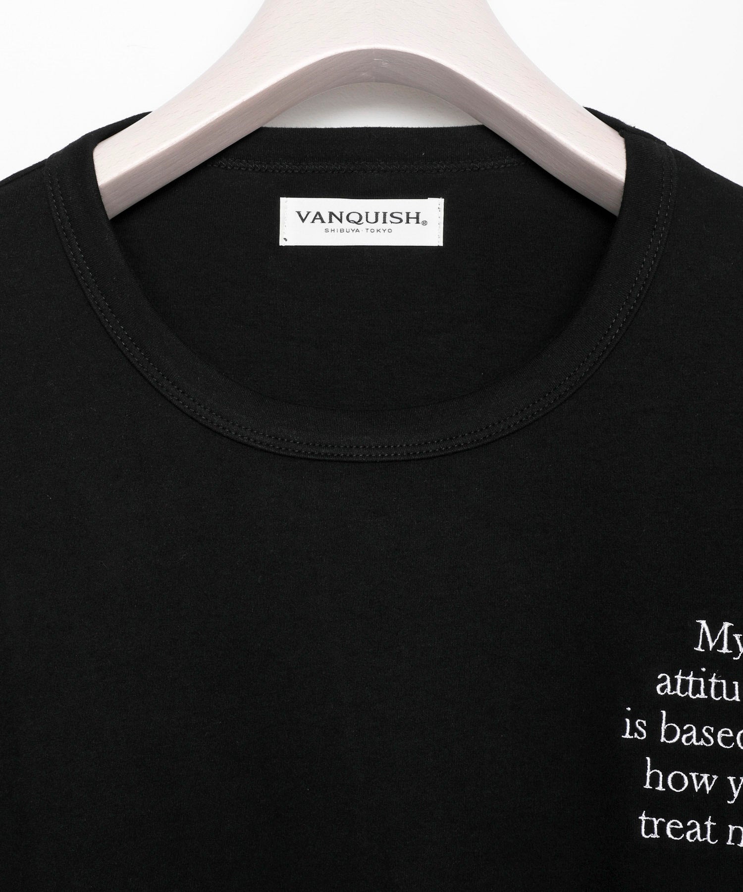全体的にゆとりを持たせたシルエットのフロント左胸にワンポイント刺繍でメッセージを落とし込んだTシャツ。日本国内で一枚づつ丁寧に生産されたジャパンクオリティアイテムでこれまでのVANQUISHとはまた違った雰囲気のある仕上がりになっていて、これから秋口にかけて活躍する一枚です。