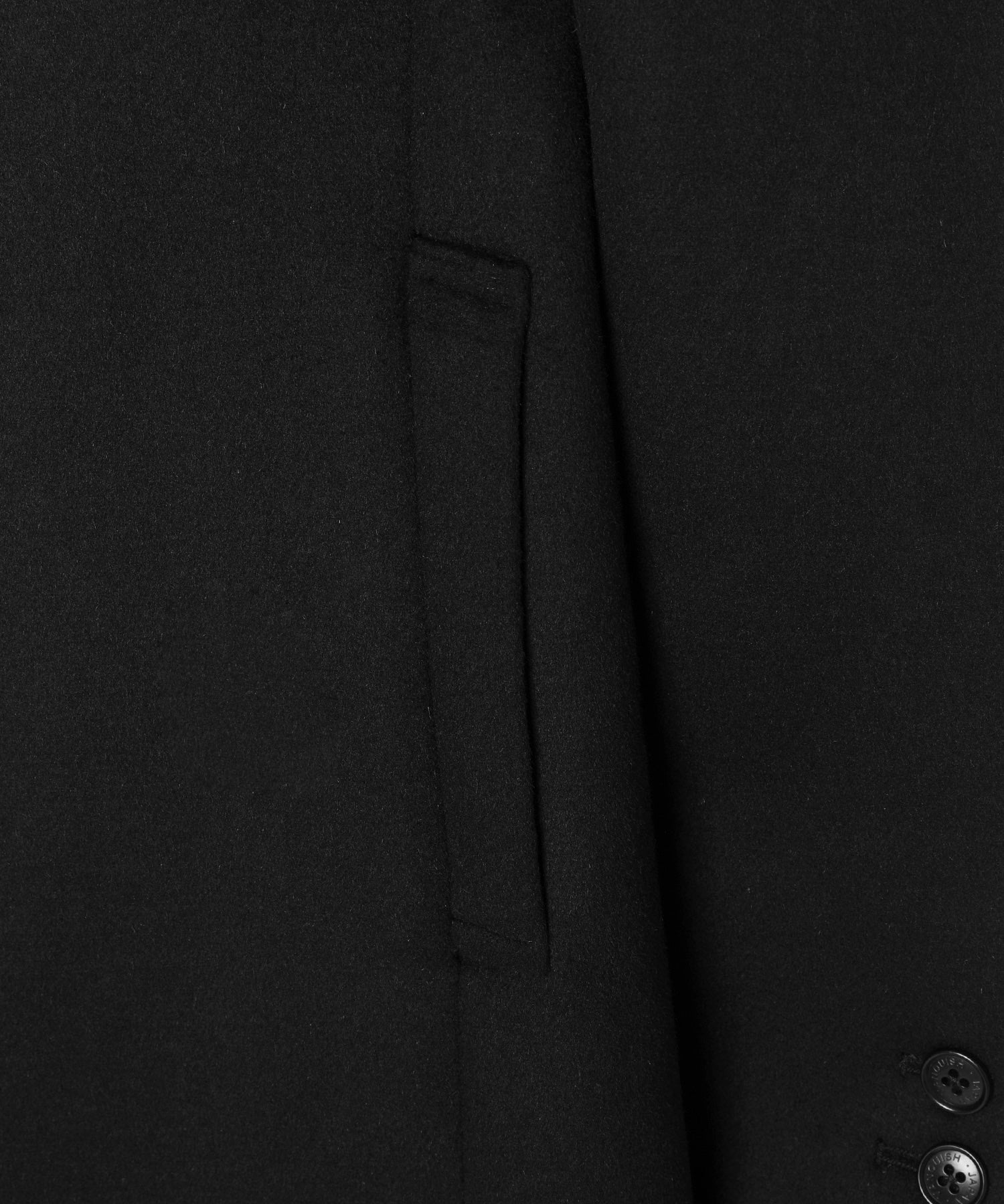 ネック周りをすっきり見せつつ細身のシルエットでスタイリッシュな雰囲気に仕立てられた一着。シンプルなデザインの中でイタリアンカラーがアクセントになっています。