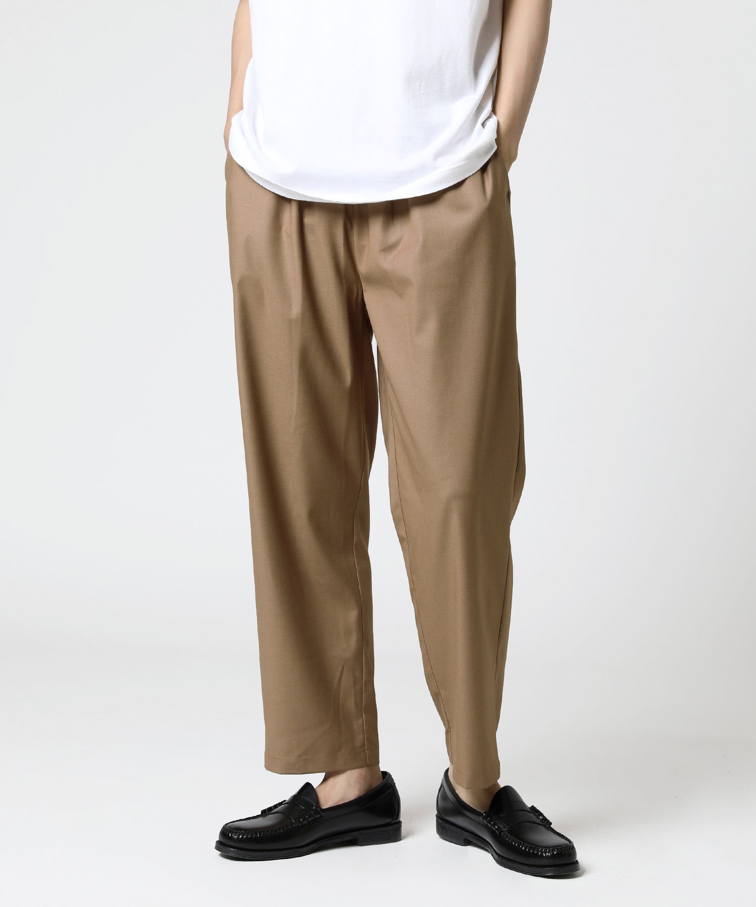 ヴァンキッシュのパンツ。 さらっとした肌触りと柔らかな生地感に加えワイドシルエットにすることでラフ感やリラックス感のあるイージーパンツ。ウエストはゴム紐を通してあり調整出来るのもポイント。 ちょっとした外出から休日のお出かけスタイルまで幅広く活躍出来る一本です。 モデル着用サイズ:M