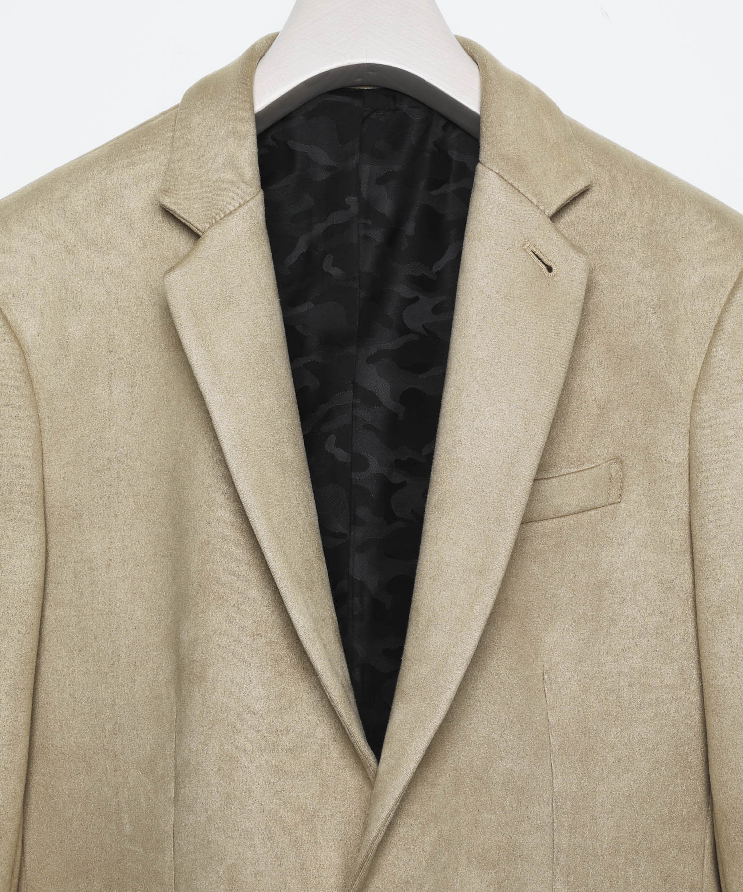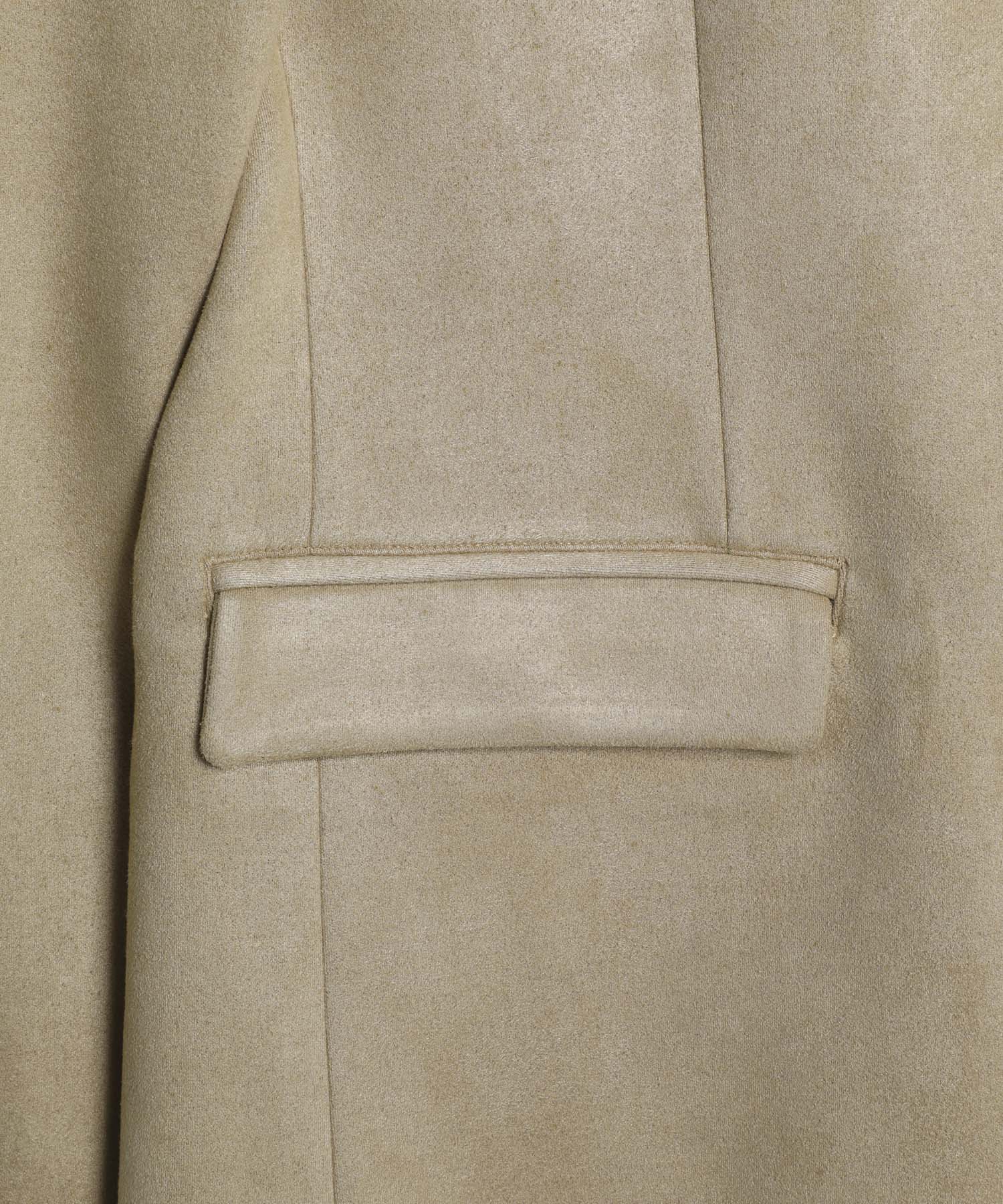 毛足が短く触り心地の良い本物のようなフェイクスウェード仕立てのテーラードジャケット。 裏地も取り付けてあり、動作が取りやすいように配慮されているのもポイント。 細身のシルエットの両サイドにダーツを入れることでより身体のラインが綺麗に見えるようになっています。