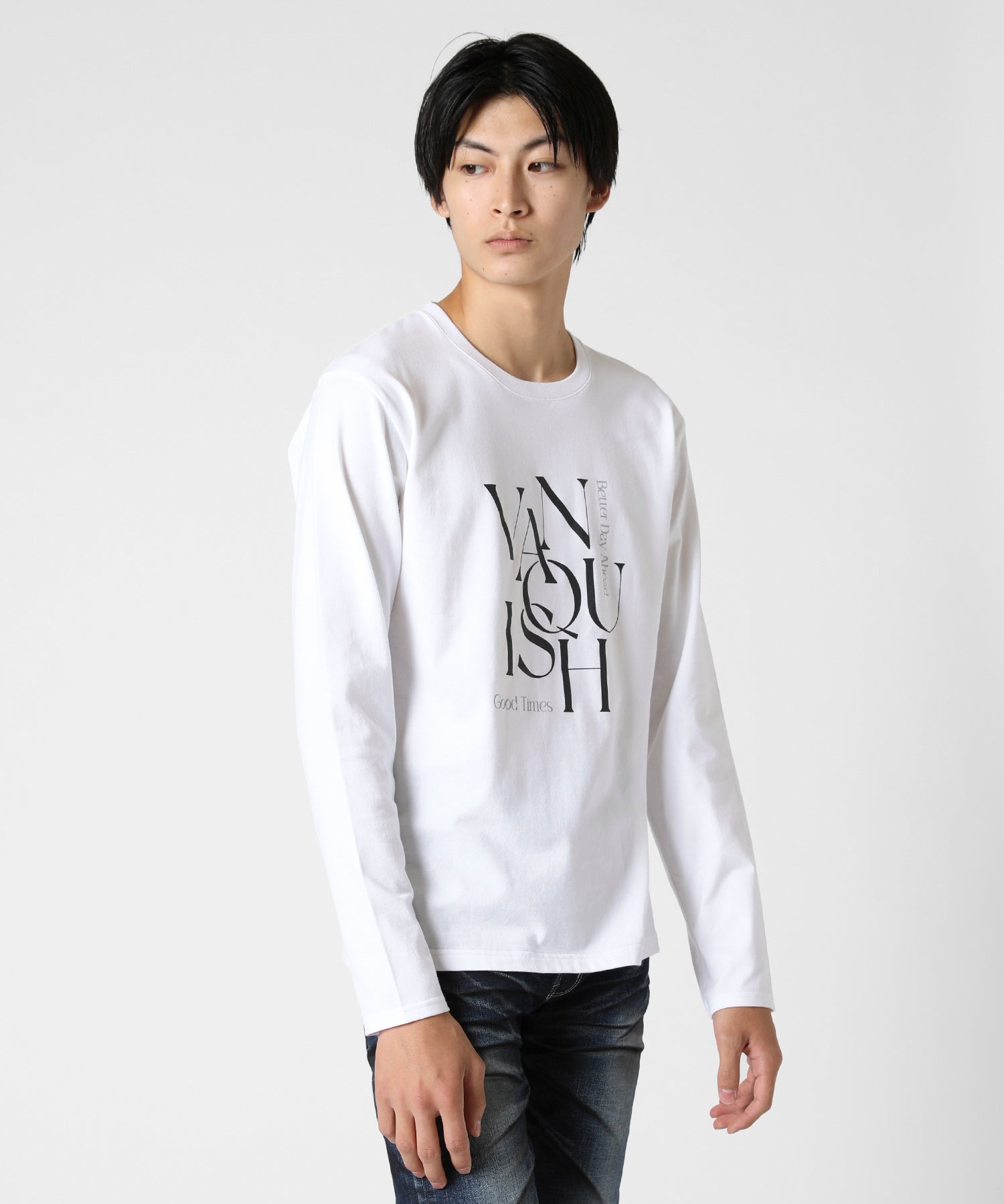 フロントにVANQUISHのロゴの入ったロングスリーブTシャツ。