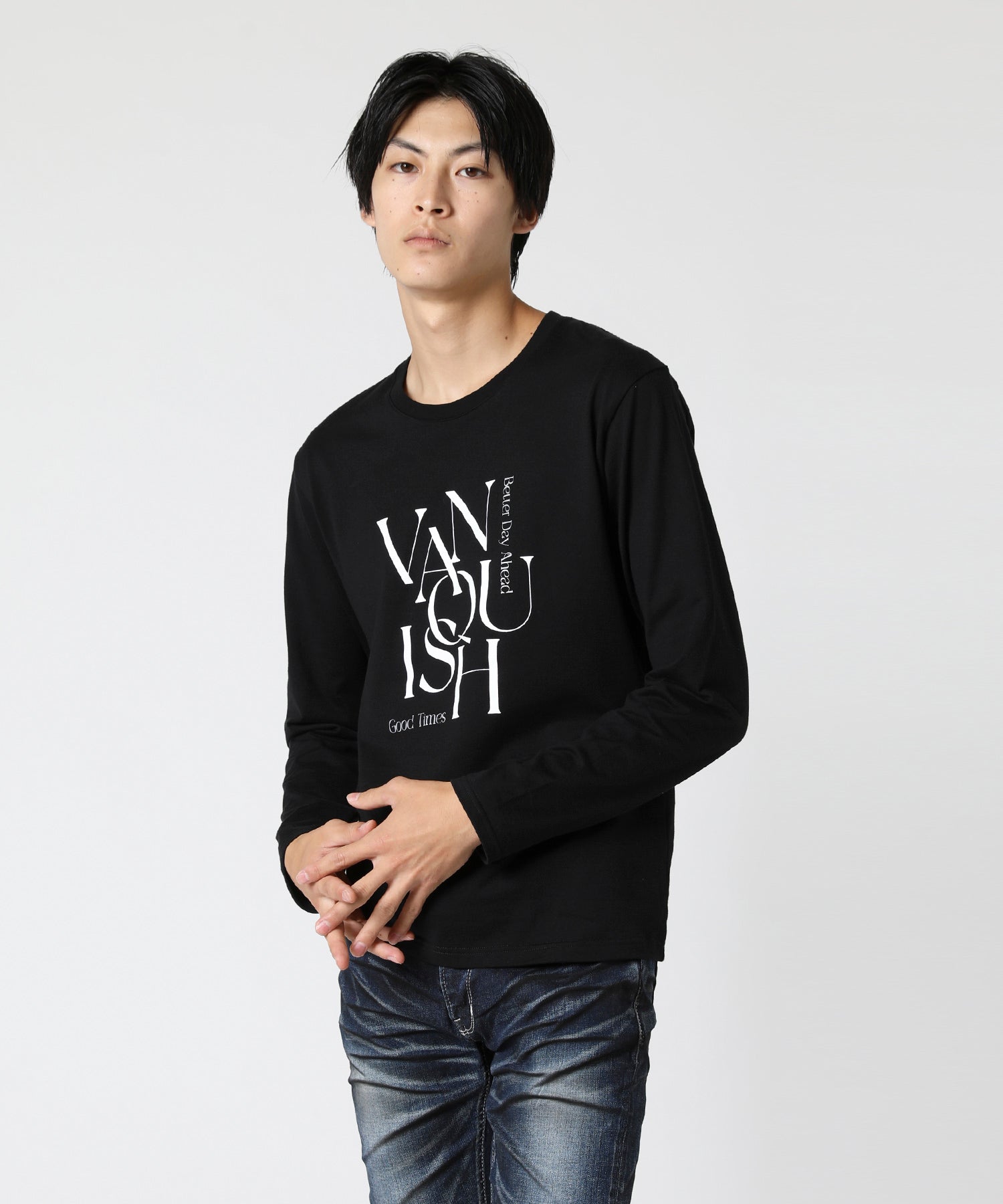 フロントにVANQUISHのロゴの入ったロングスリーブTシャツ。