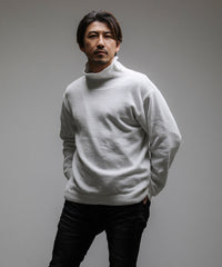 モール糸を使用したハイネックニット。