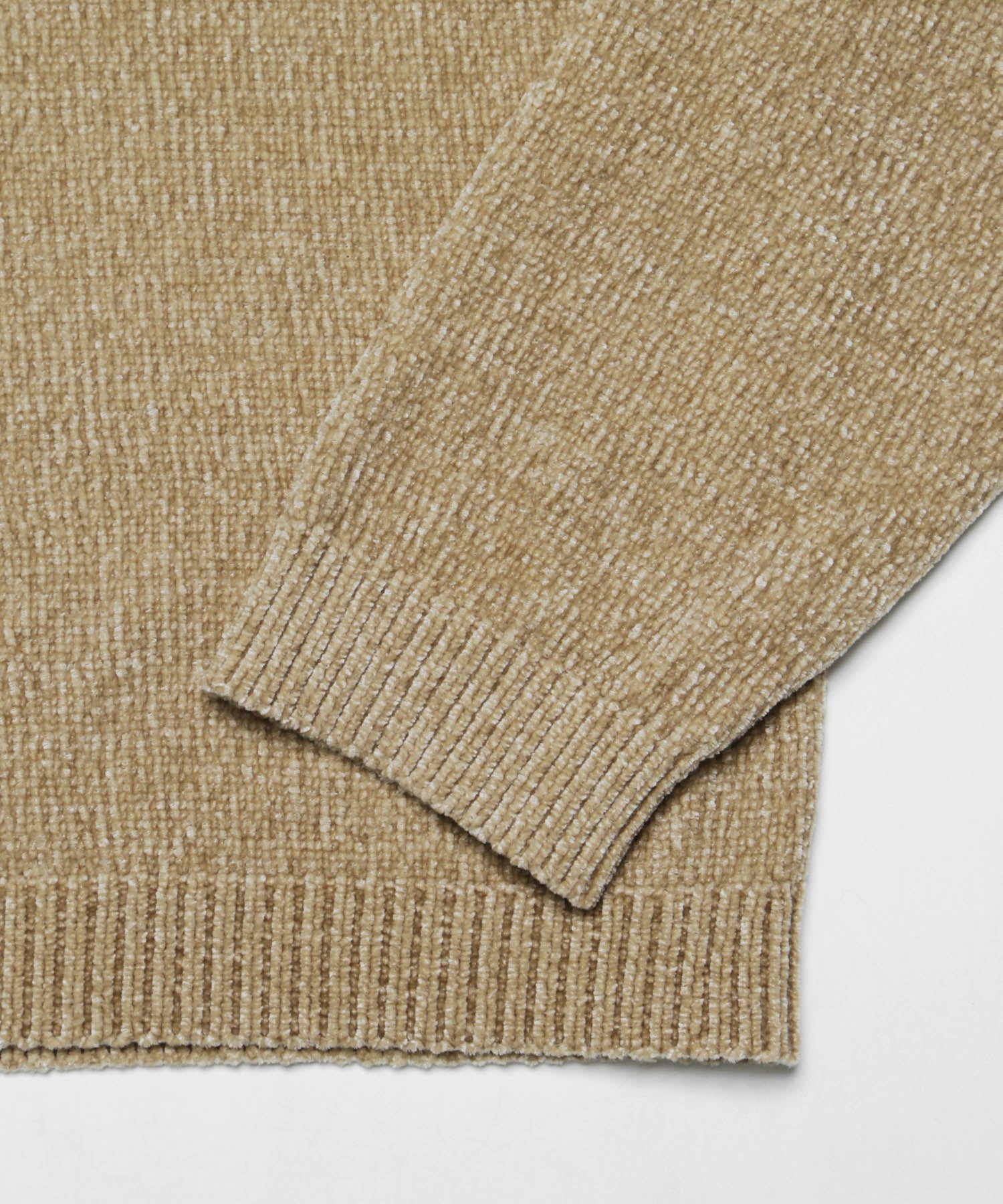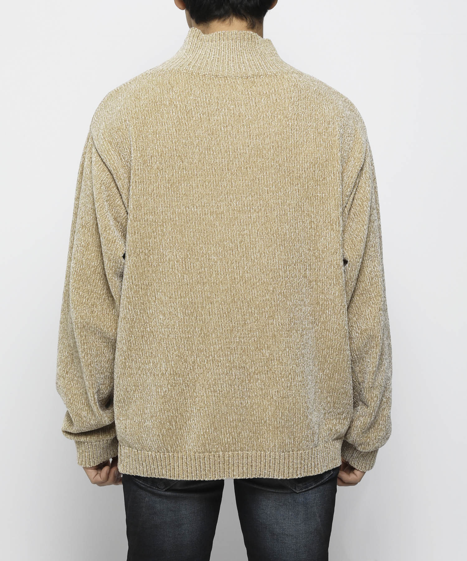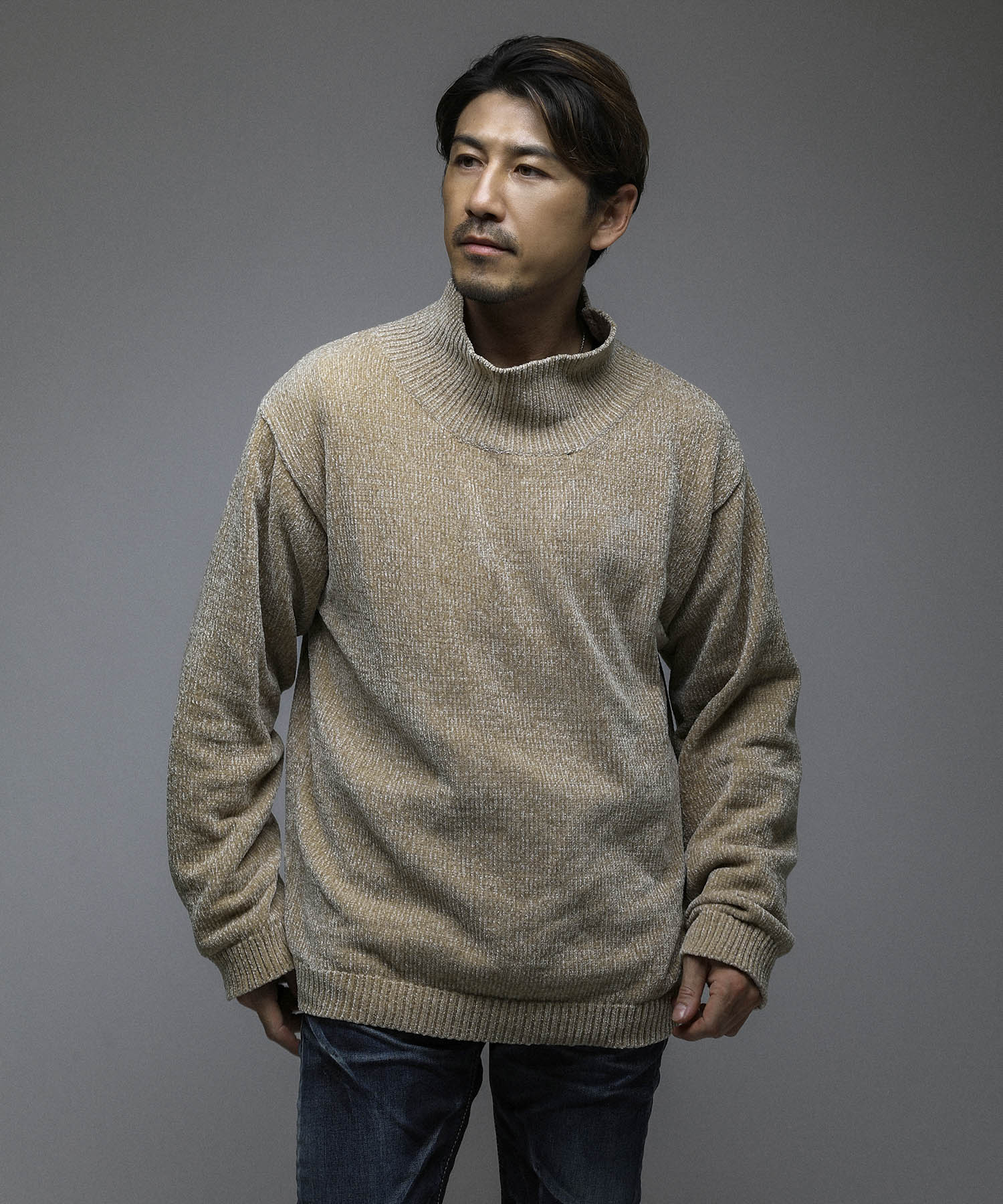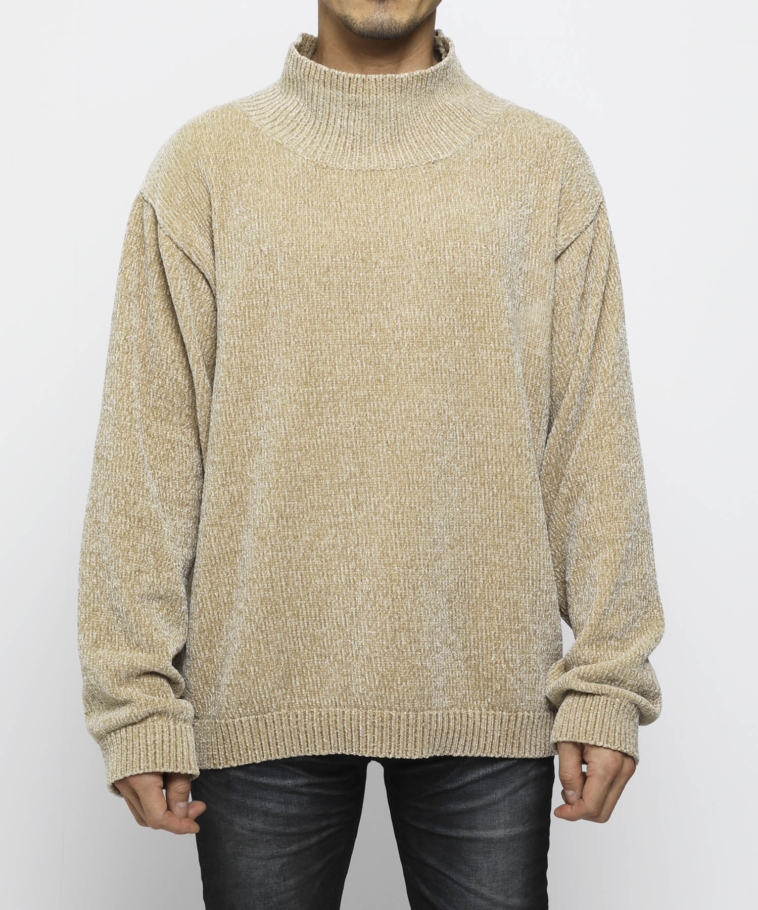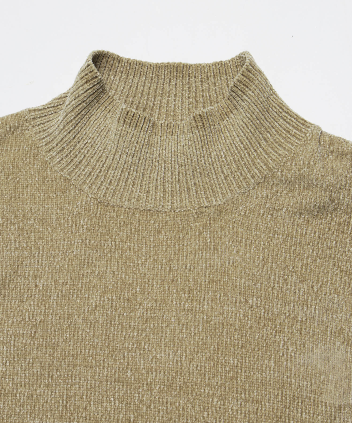 モール糸を使用したハイネックニット。