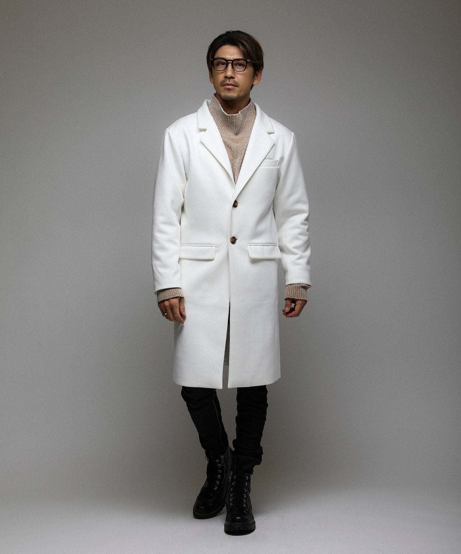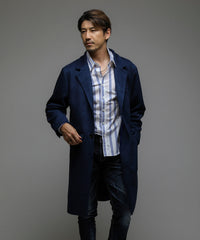 細身のシルエットで身体のラインも綺麗に見せてくれるチェスターコート。