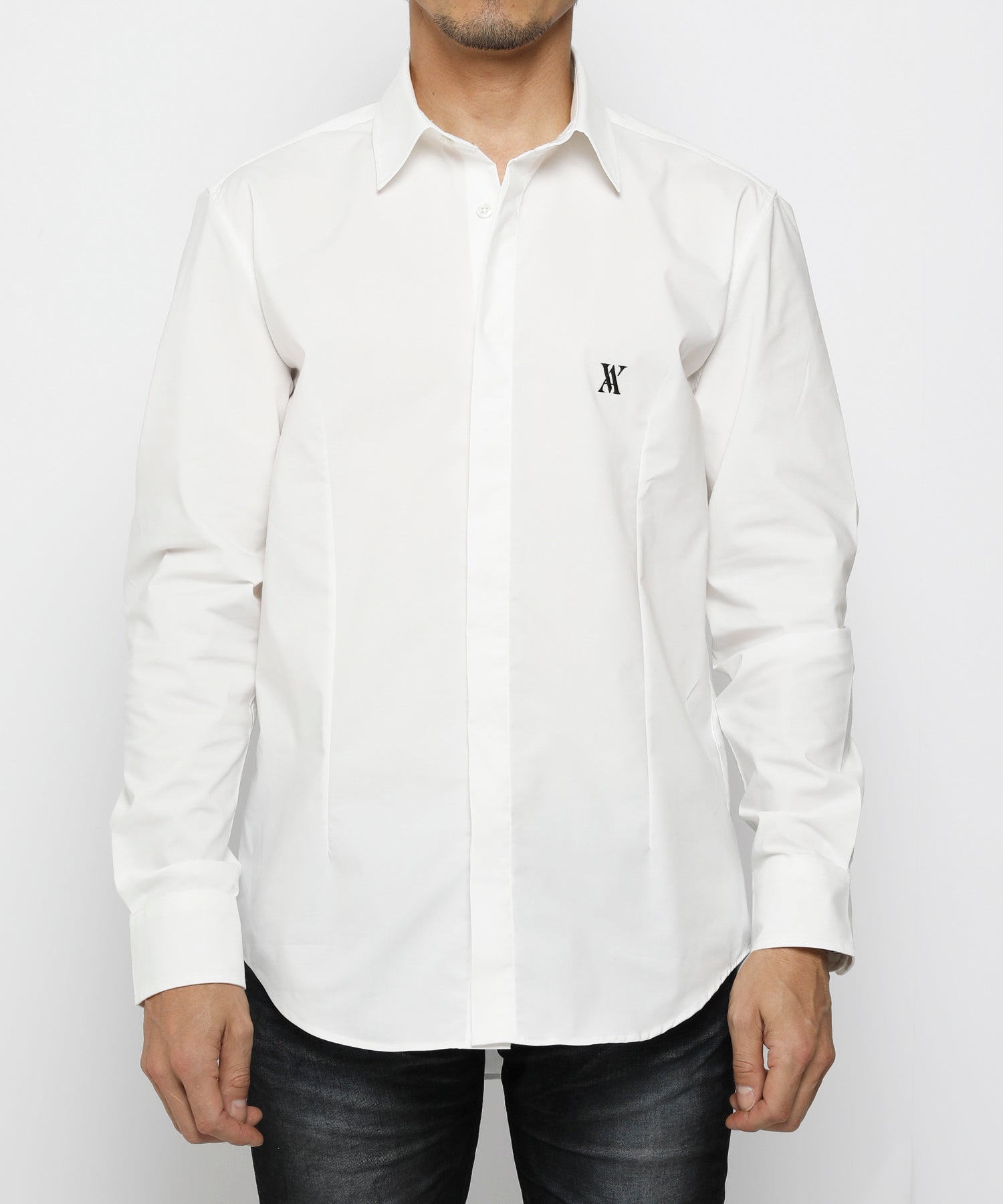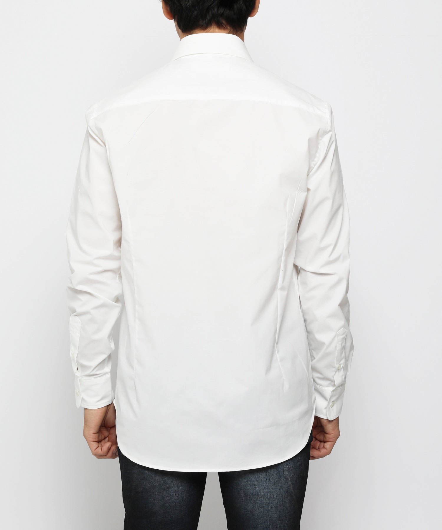 比翼のドレスシャツ。動きやすいストレッチ素材を使用。