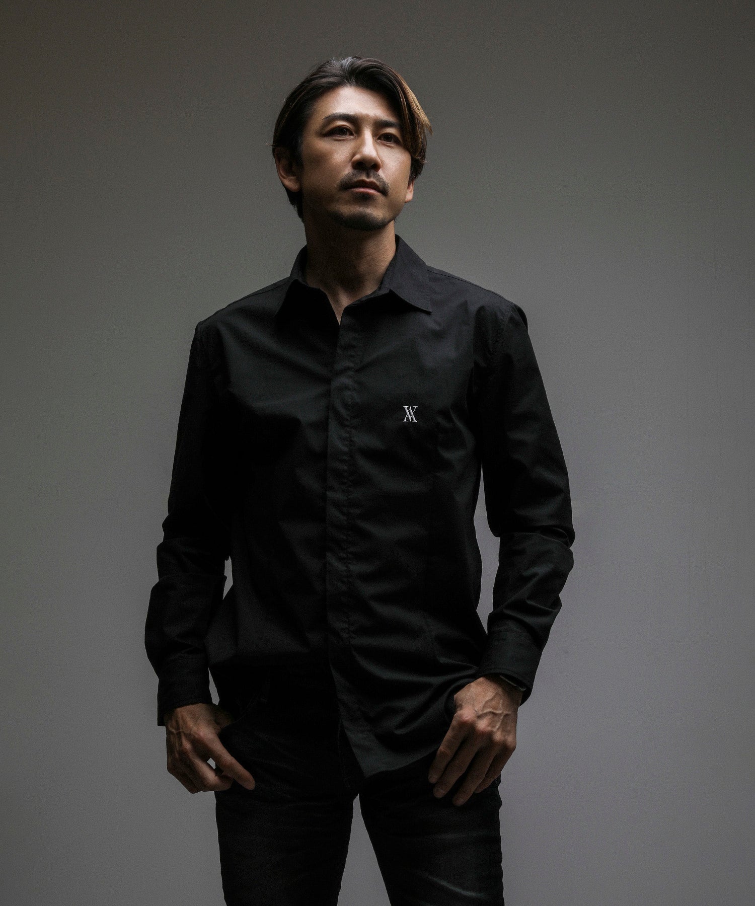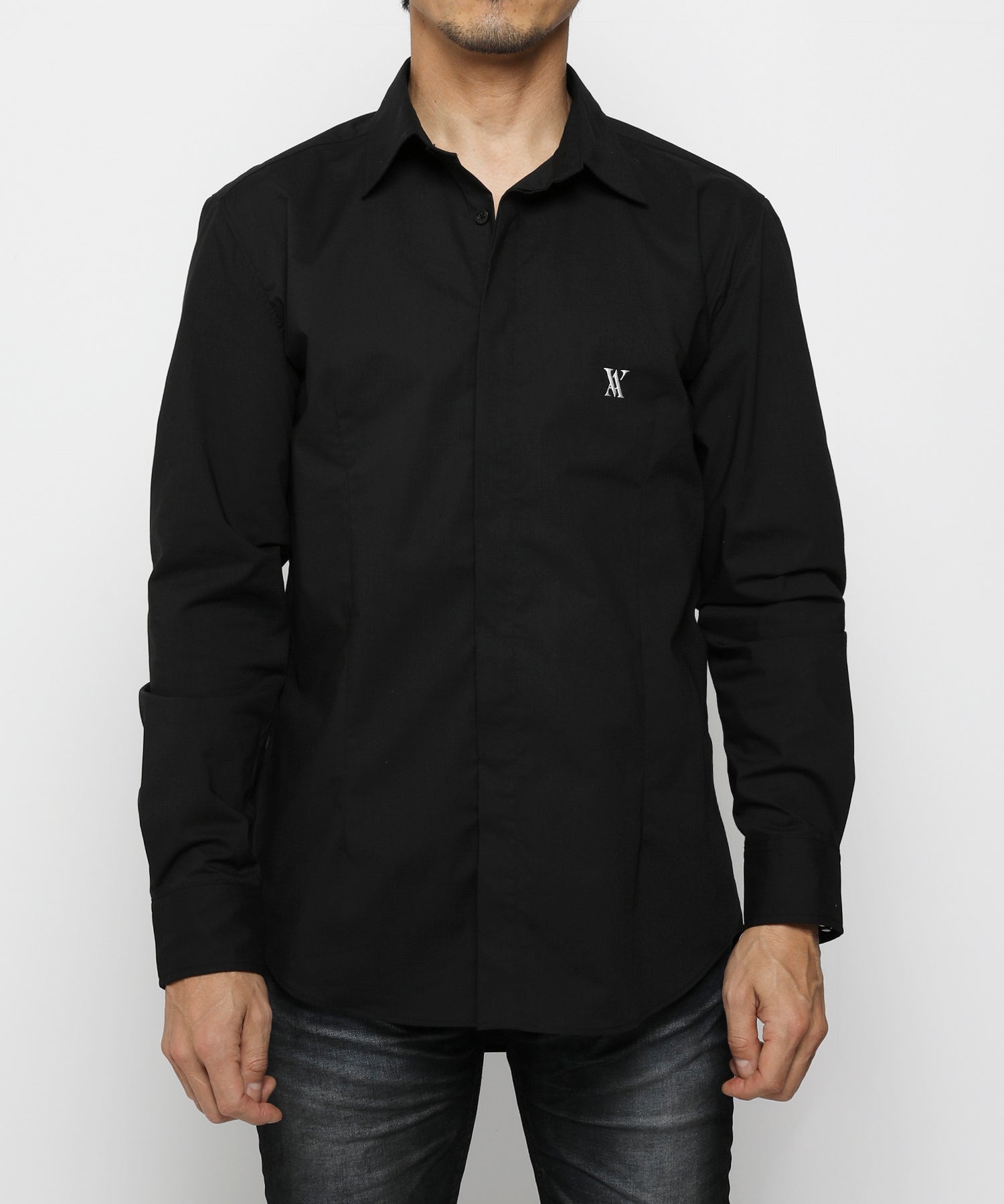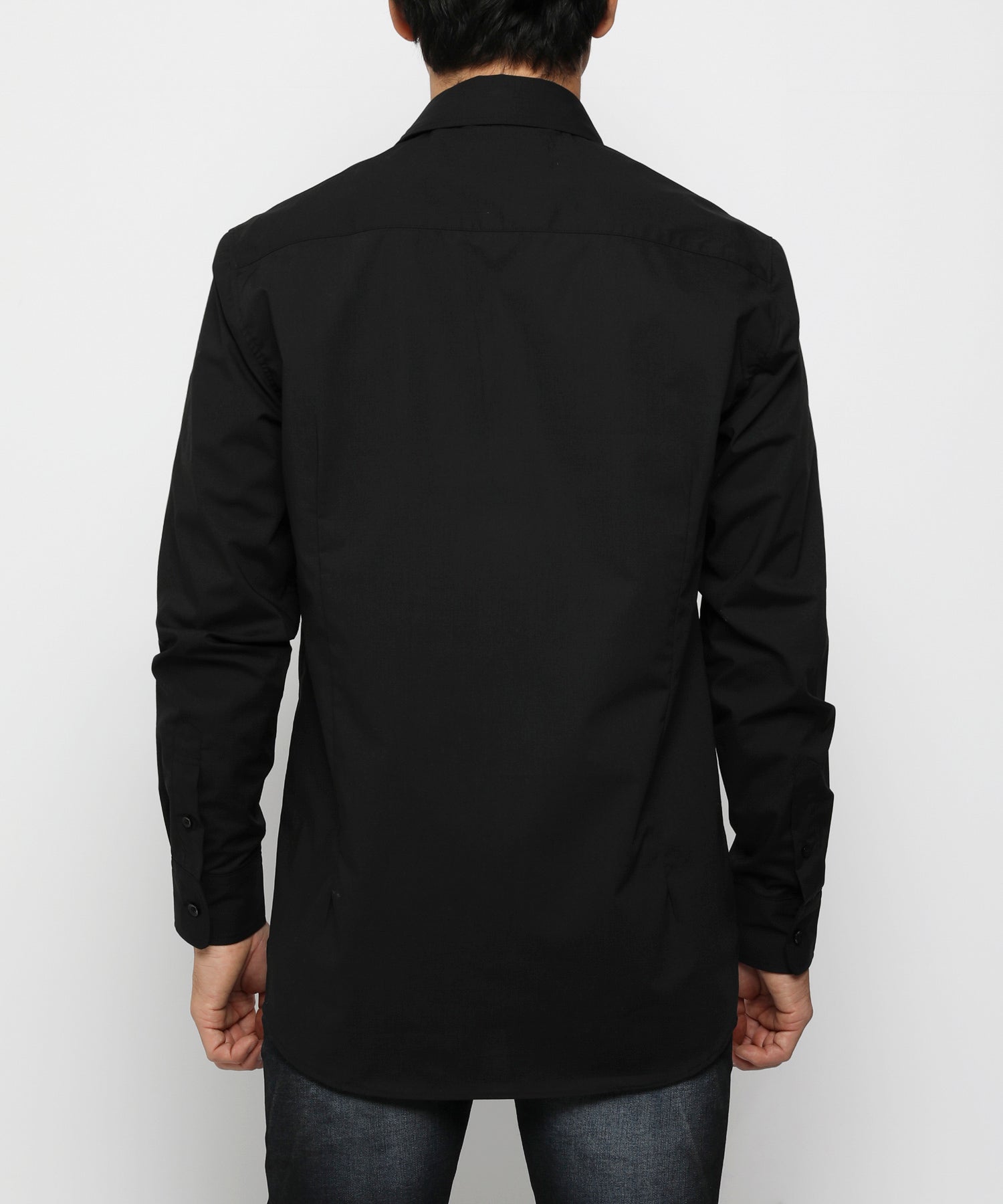 比翼のドレスシャツ。動きやすいストレッチ素材を使用。