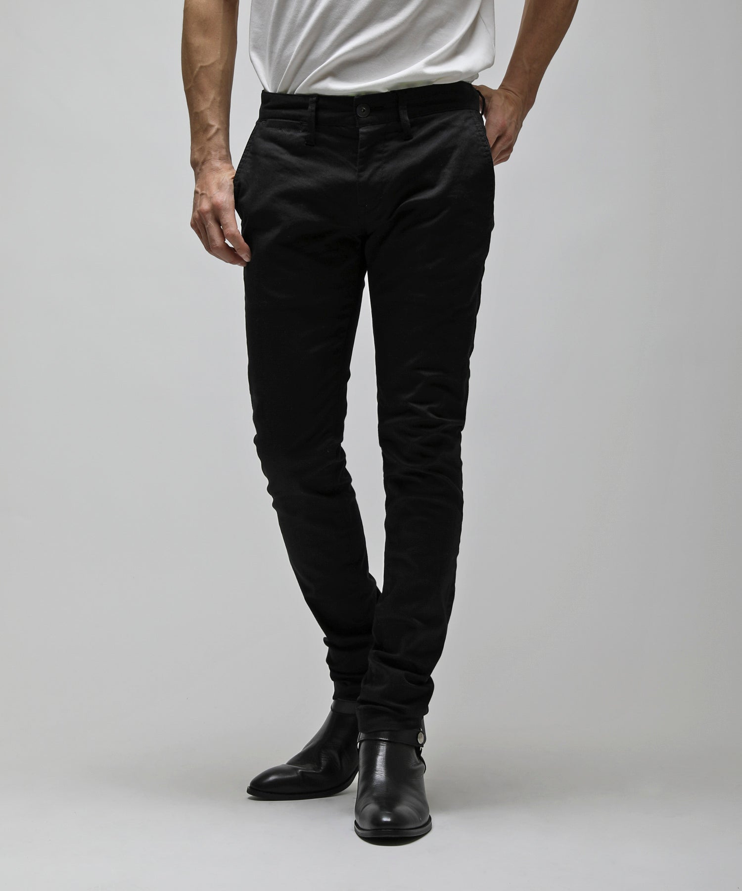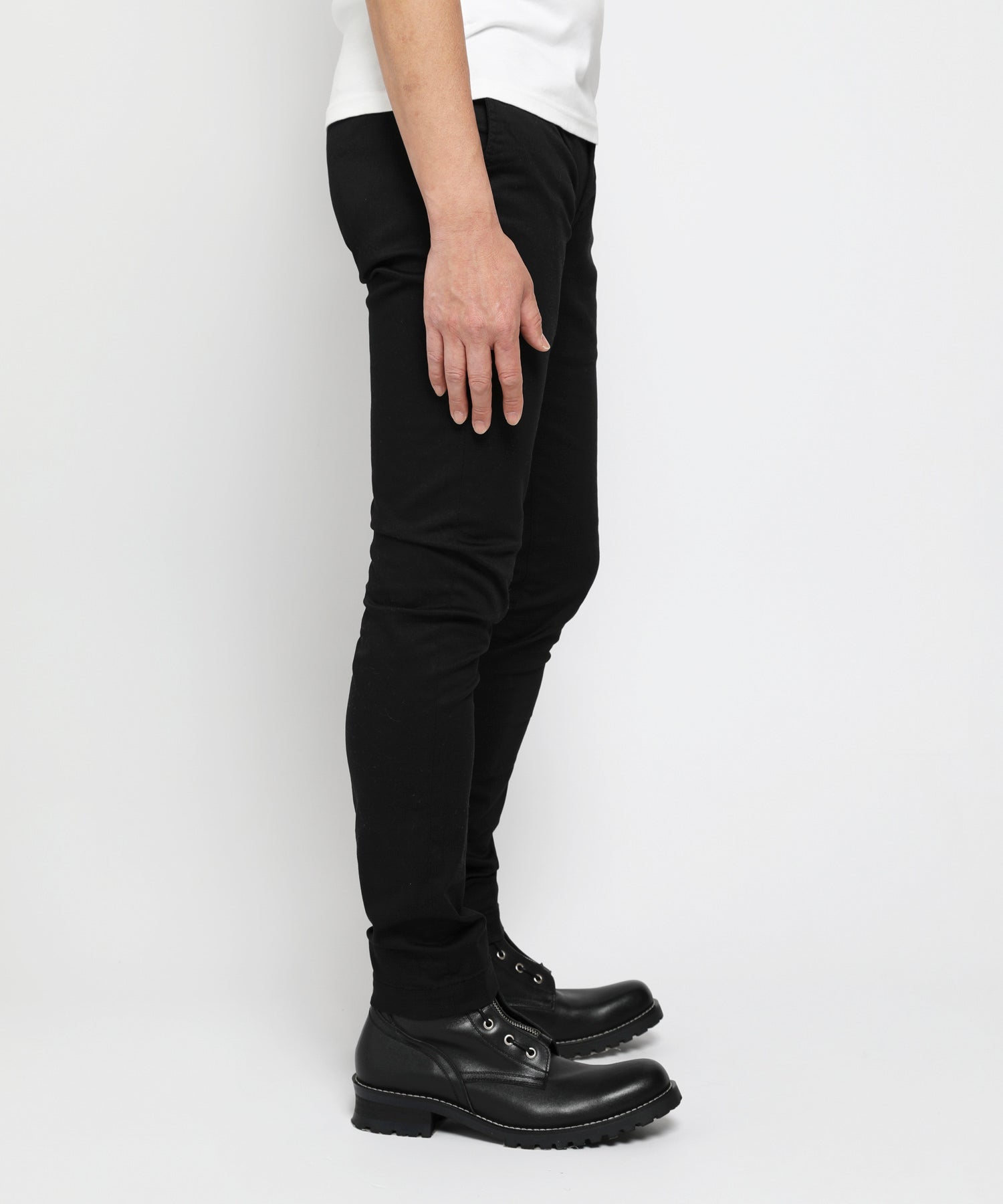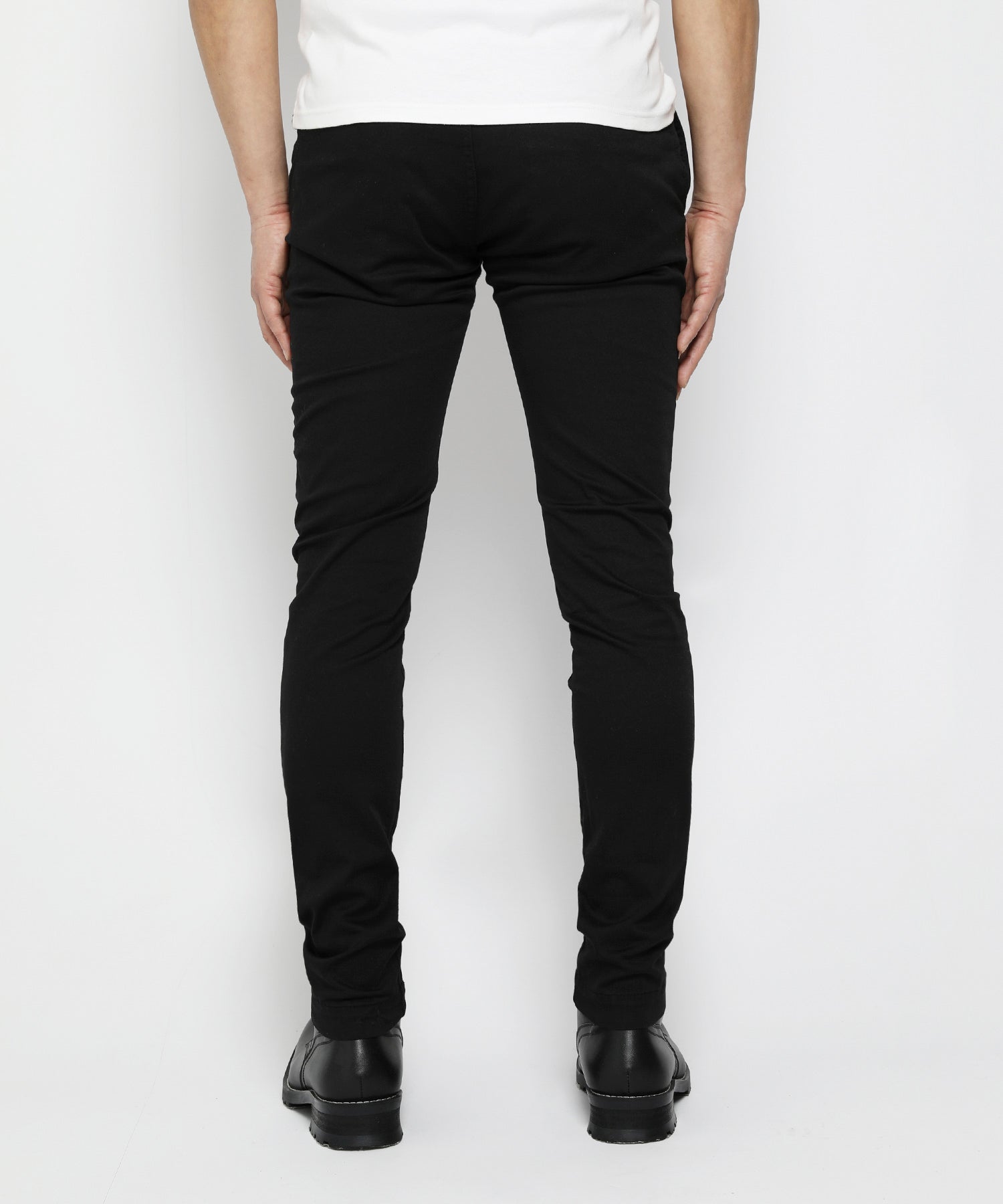 脚にしっかりとフィットしてキレイに見せてくれるスキニーシルエット仕立てのチノパンツ。