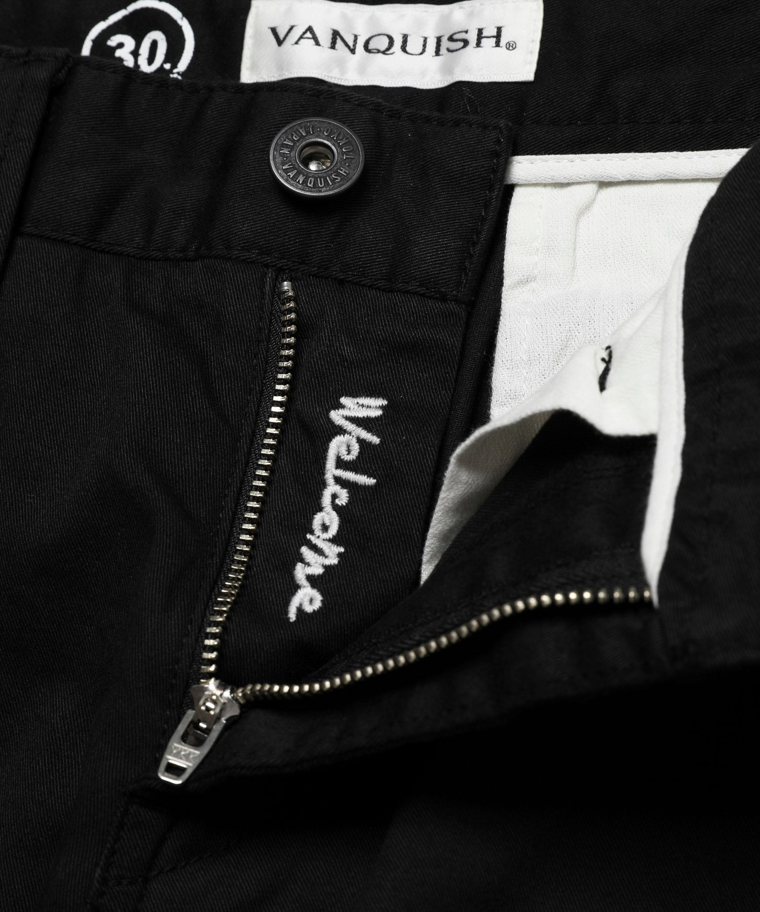 ボタンはブランドロゴが刻印されたオリジナルデザイン。フロントジップの内側には「Welcome」の刺繍入り。