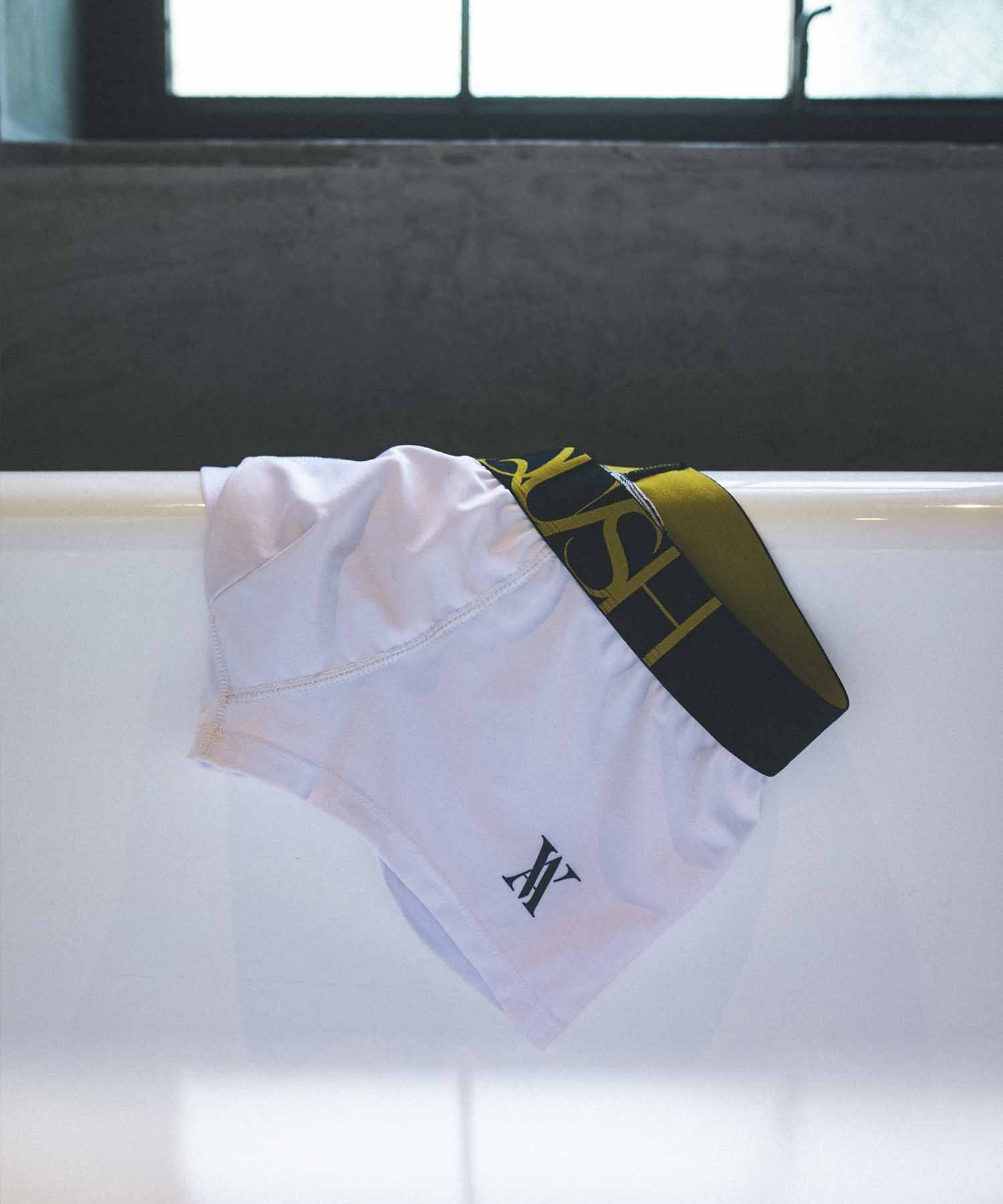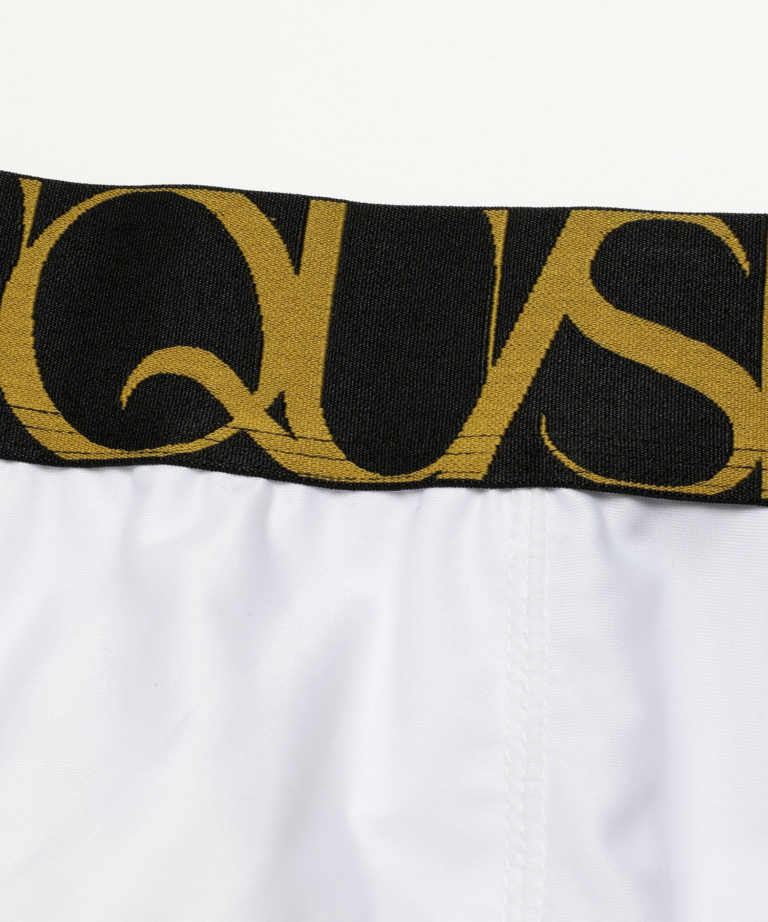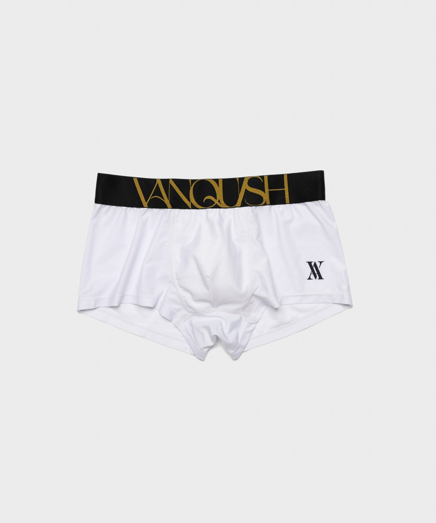 ウエストゴム部のVANQUISHロゴはジャカード編みで上品さを演出。
