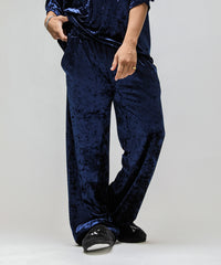 ストレッチ性のある素材を使用したベロアパンツ。