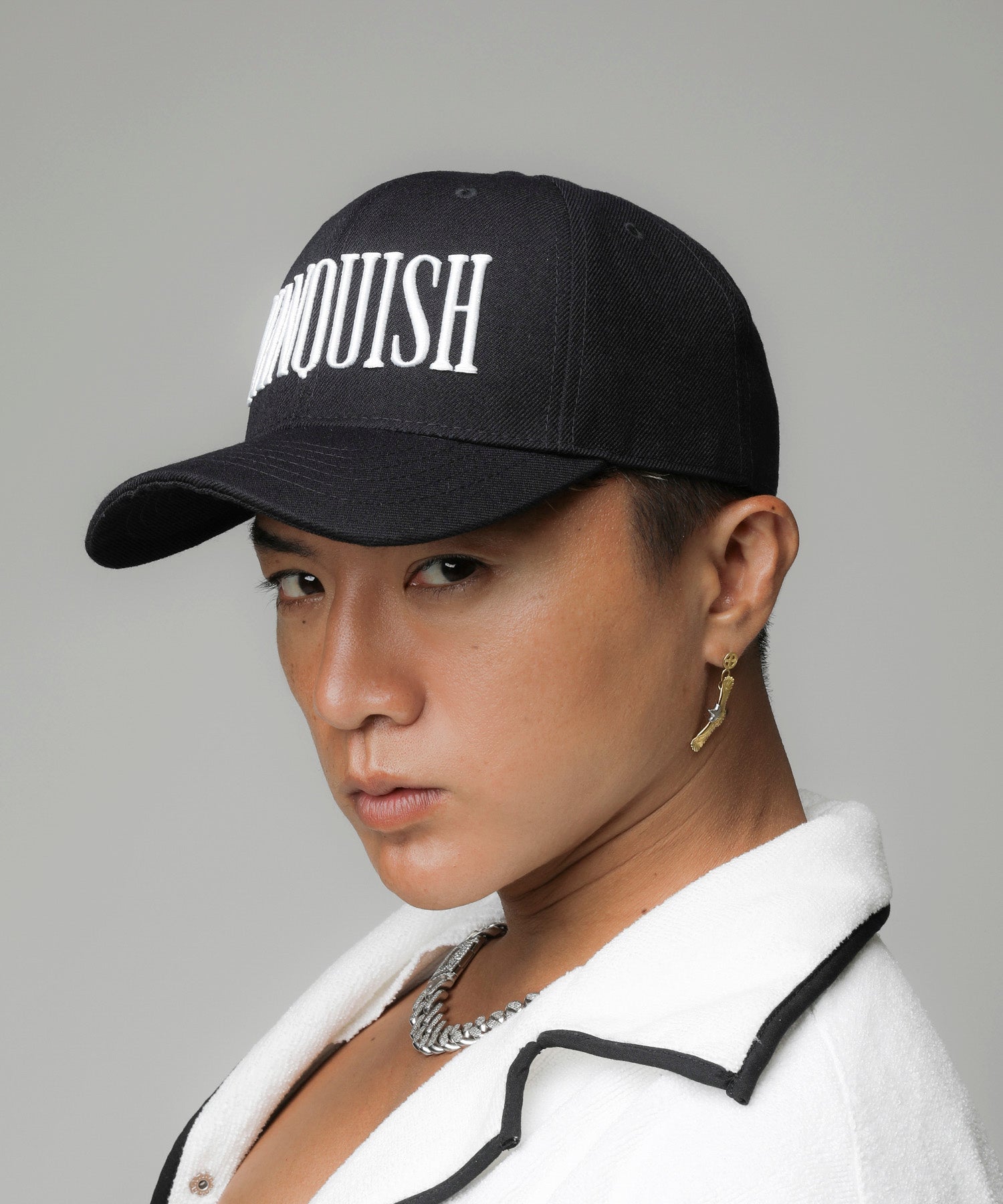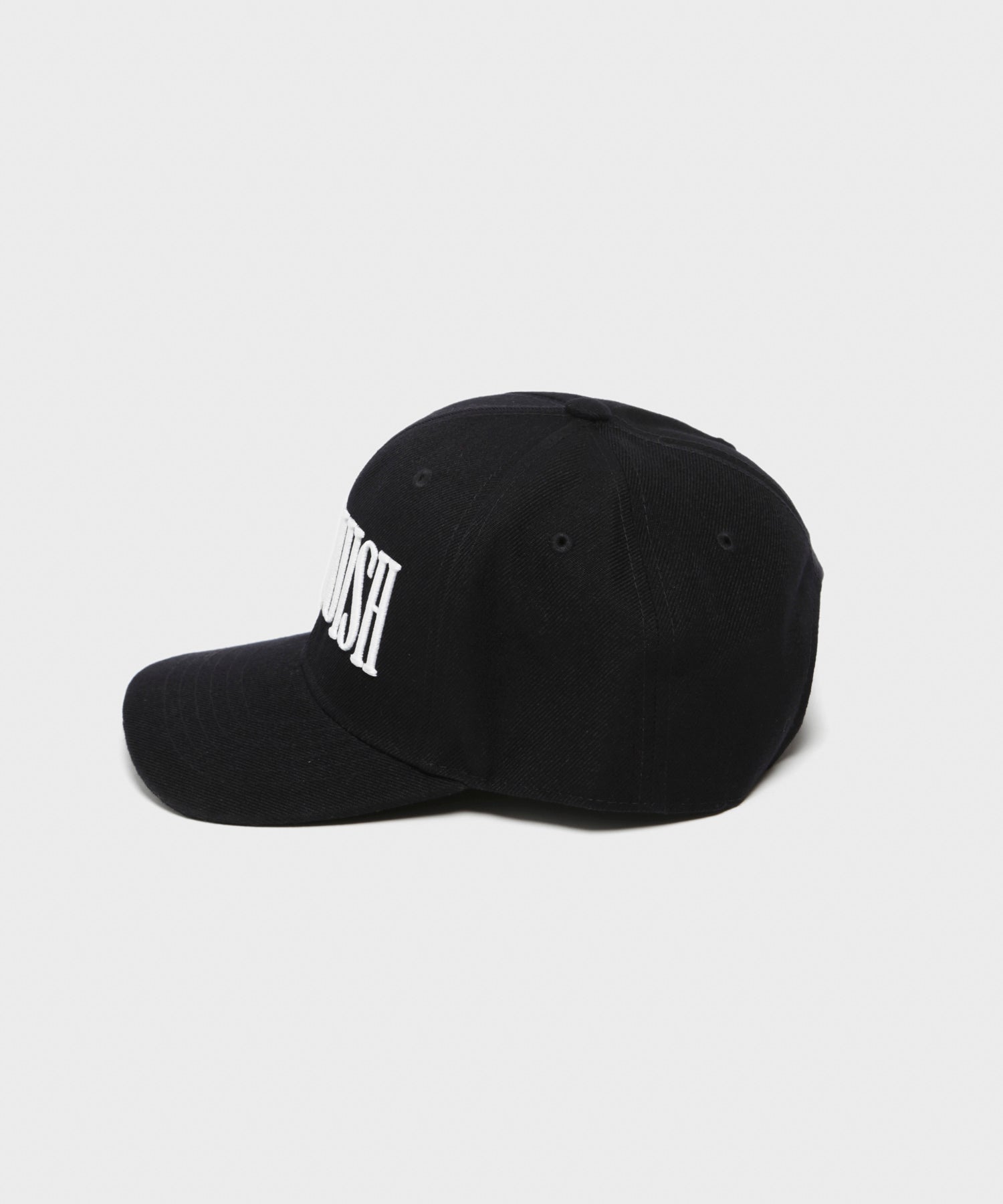 ブラックのボディーにホワイトの刺繍がスタイリッシュな6パネルキャップ。