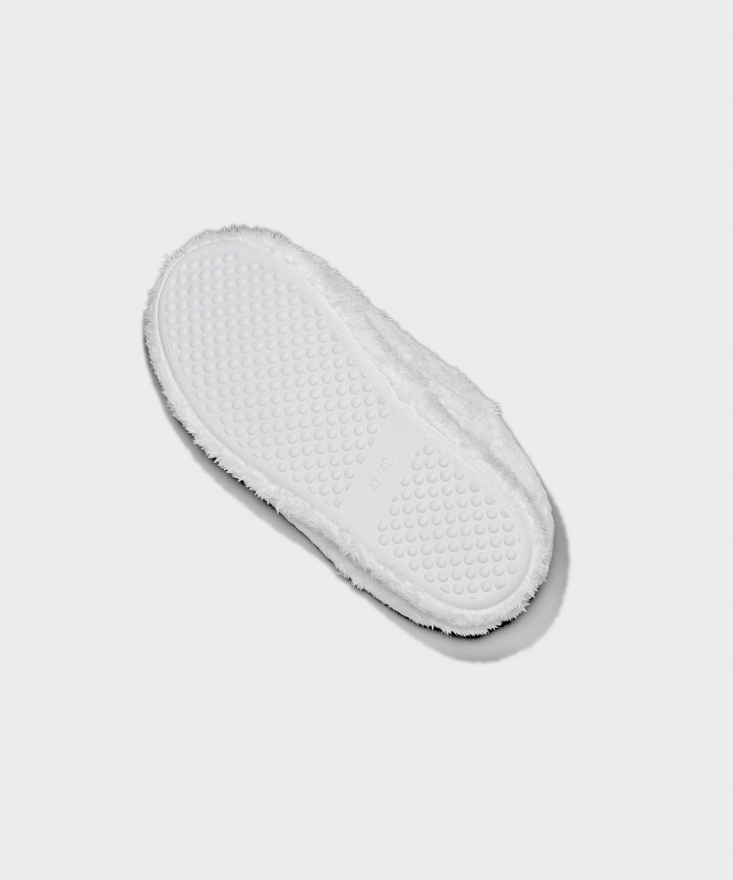 ポリエステル製のフェイクファー(エコファー)を使用したスリッパ。