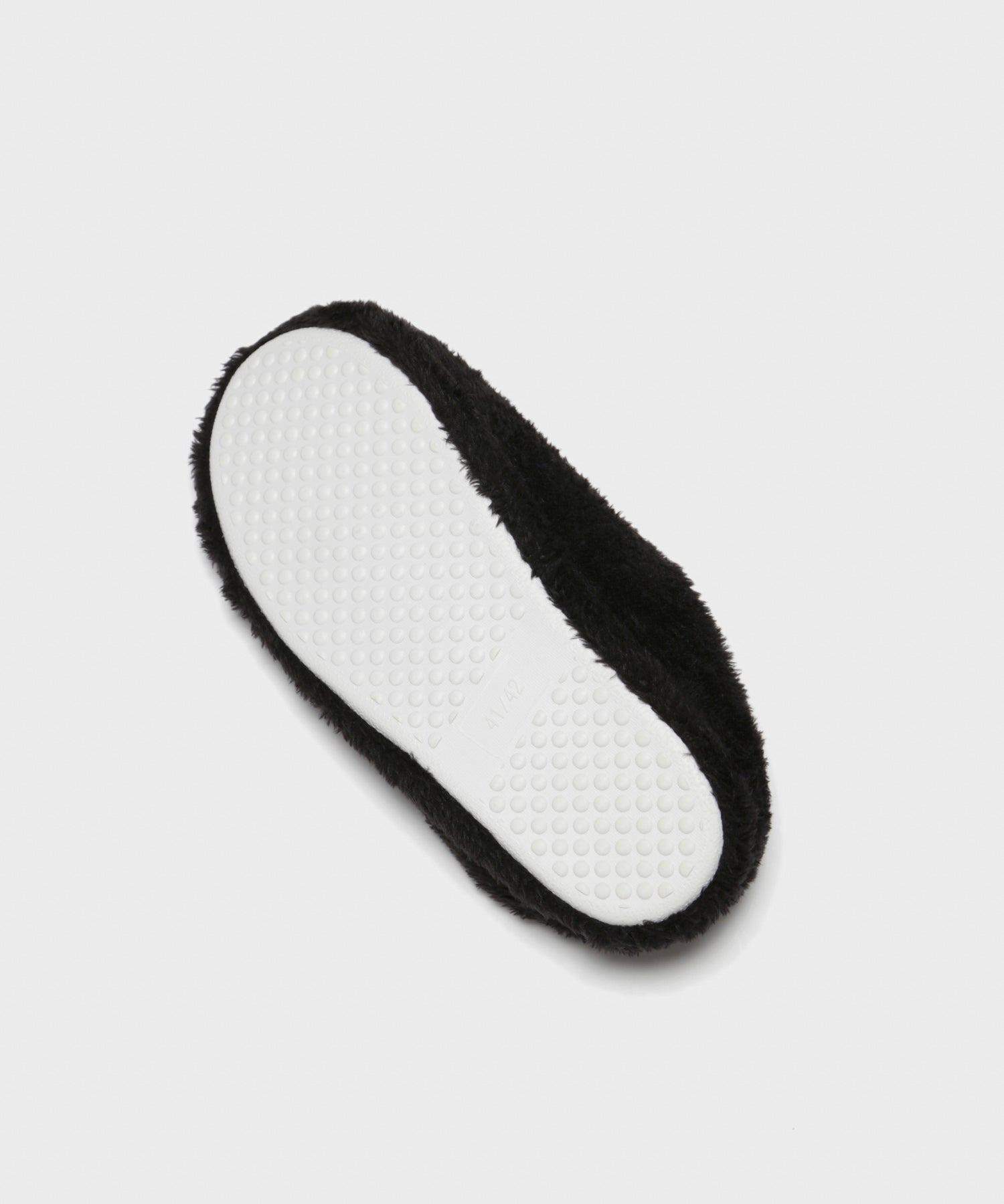 ポリエステル製のフェイクファー(エコファー)を使用したスリッパ。 フロント部分には大きくVAロゴの刺繍。 アウトソールには滑り止めがついているためフローリングでも安心してご使用いただけます。 インソールも外側と同じくエコファーを使用しているためフワフワしており最高の履き心地を体感いただけます。