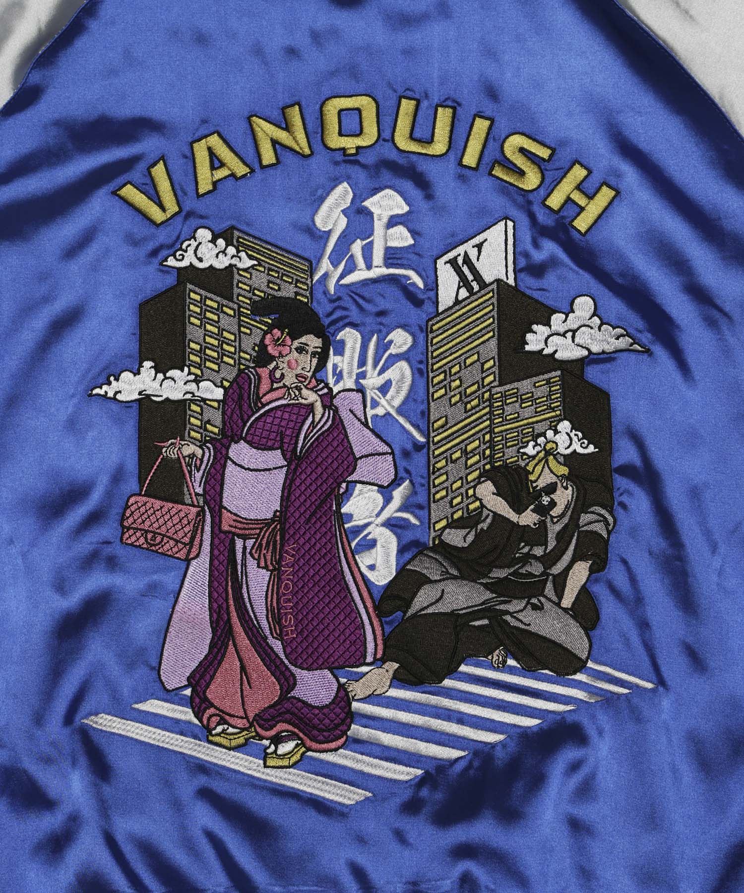日本発祥のアイテムにあえて注視しながらVANQUISHらしいオリジナリティ溢れる仕上がりで、スカジャンの特徴とも言える刺繍も東京の街並みに着目。