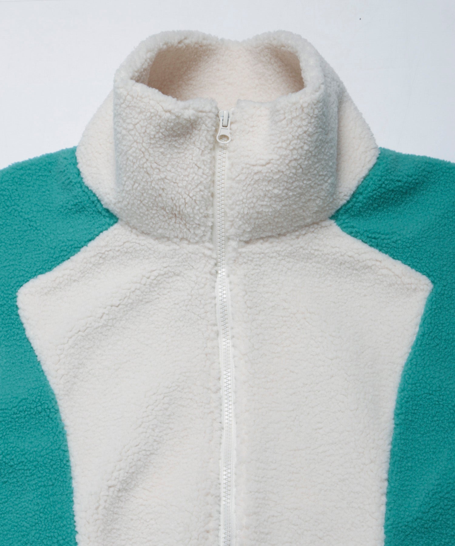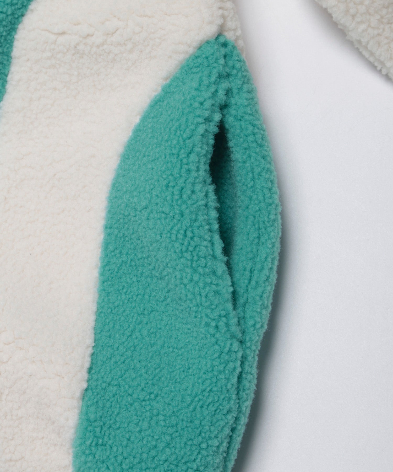 表地は毛足の長い厚手のボア素材を使用した切り返しのあるデザイン。