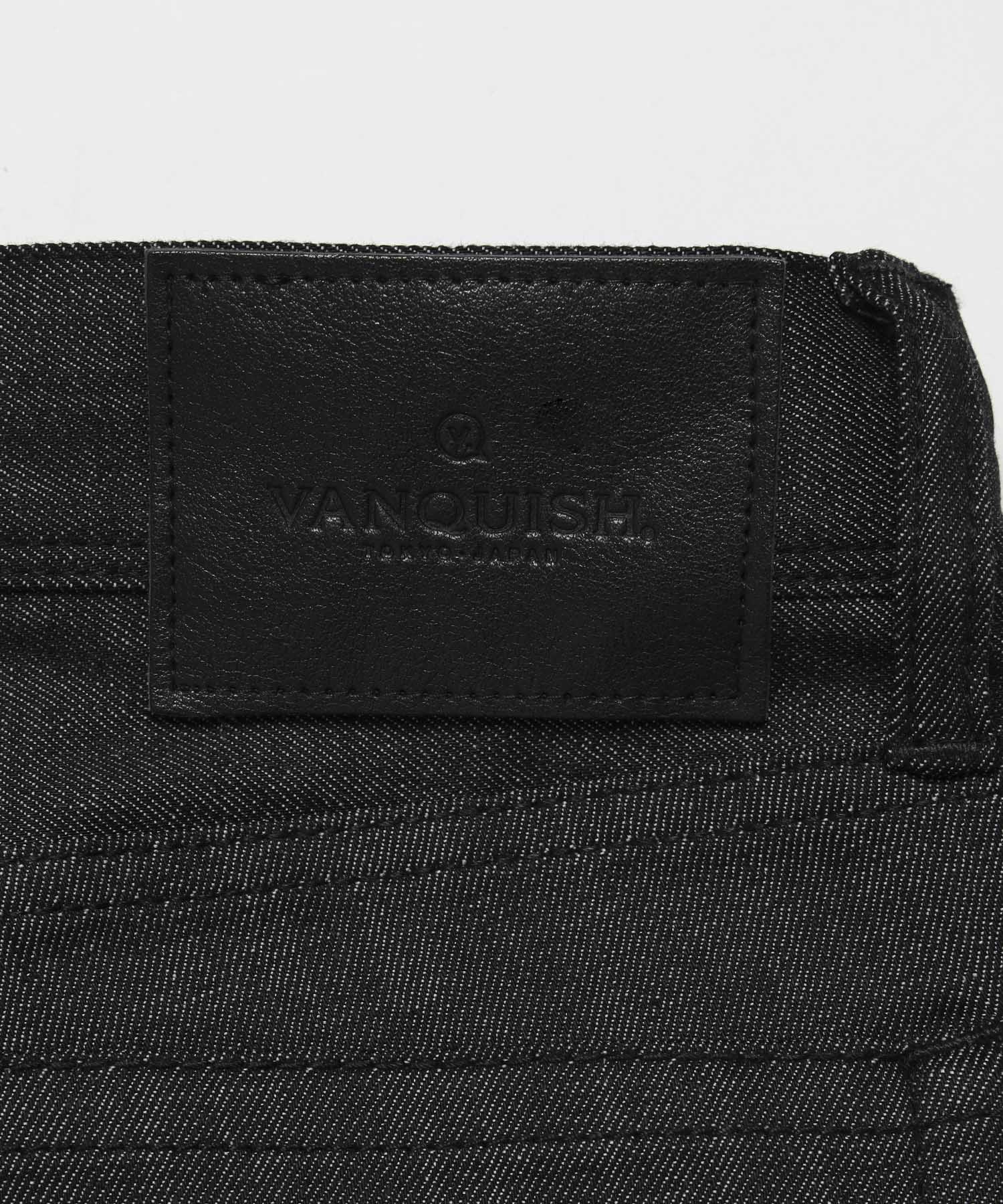 ウエスト後ろにはブランドロゴを刻印したレザーパッチを施し、オリジナルボタンにもブランドロゴが刻印されています。