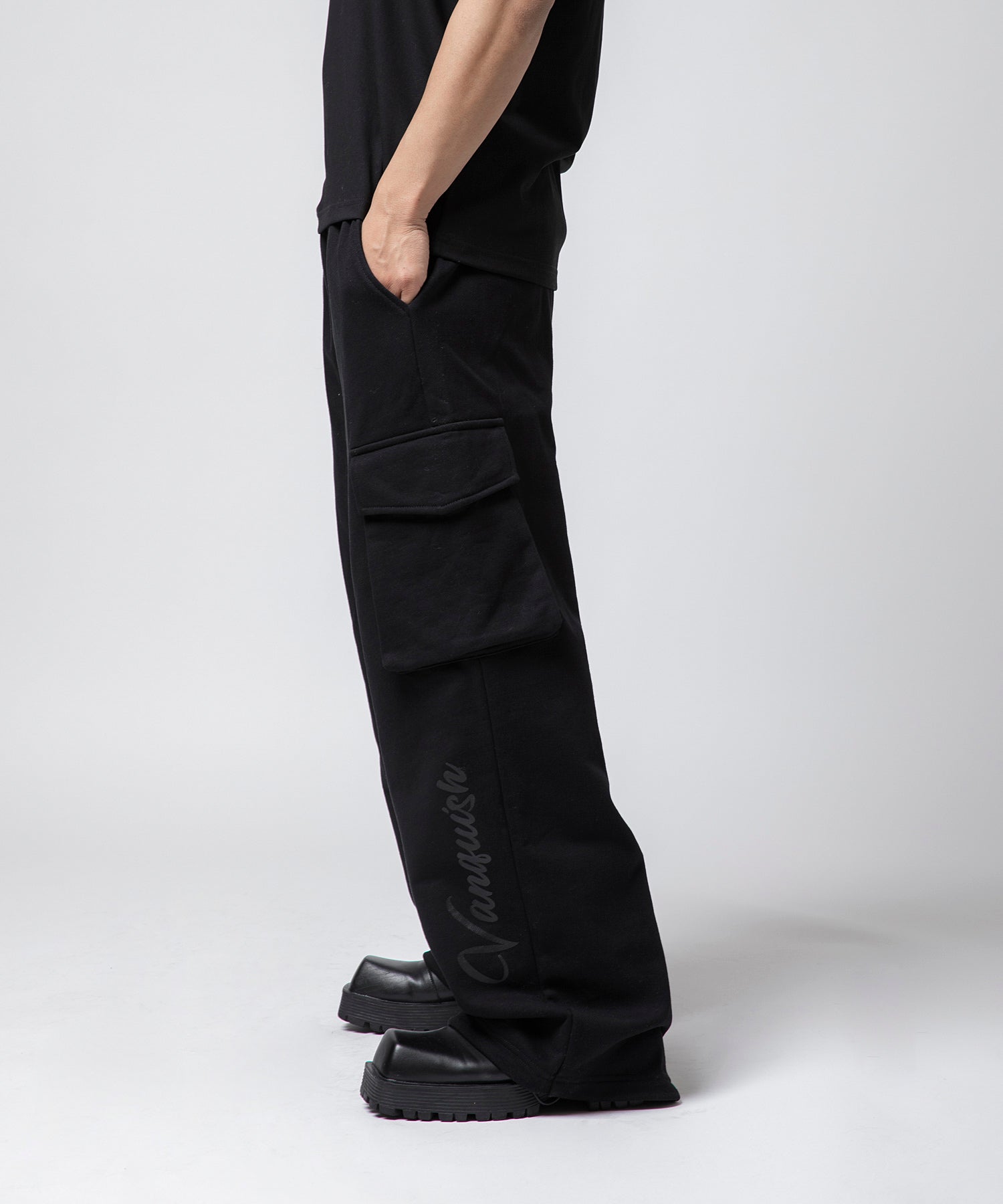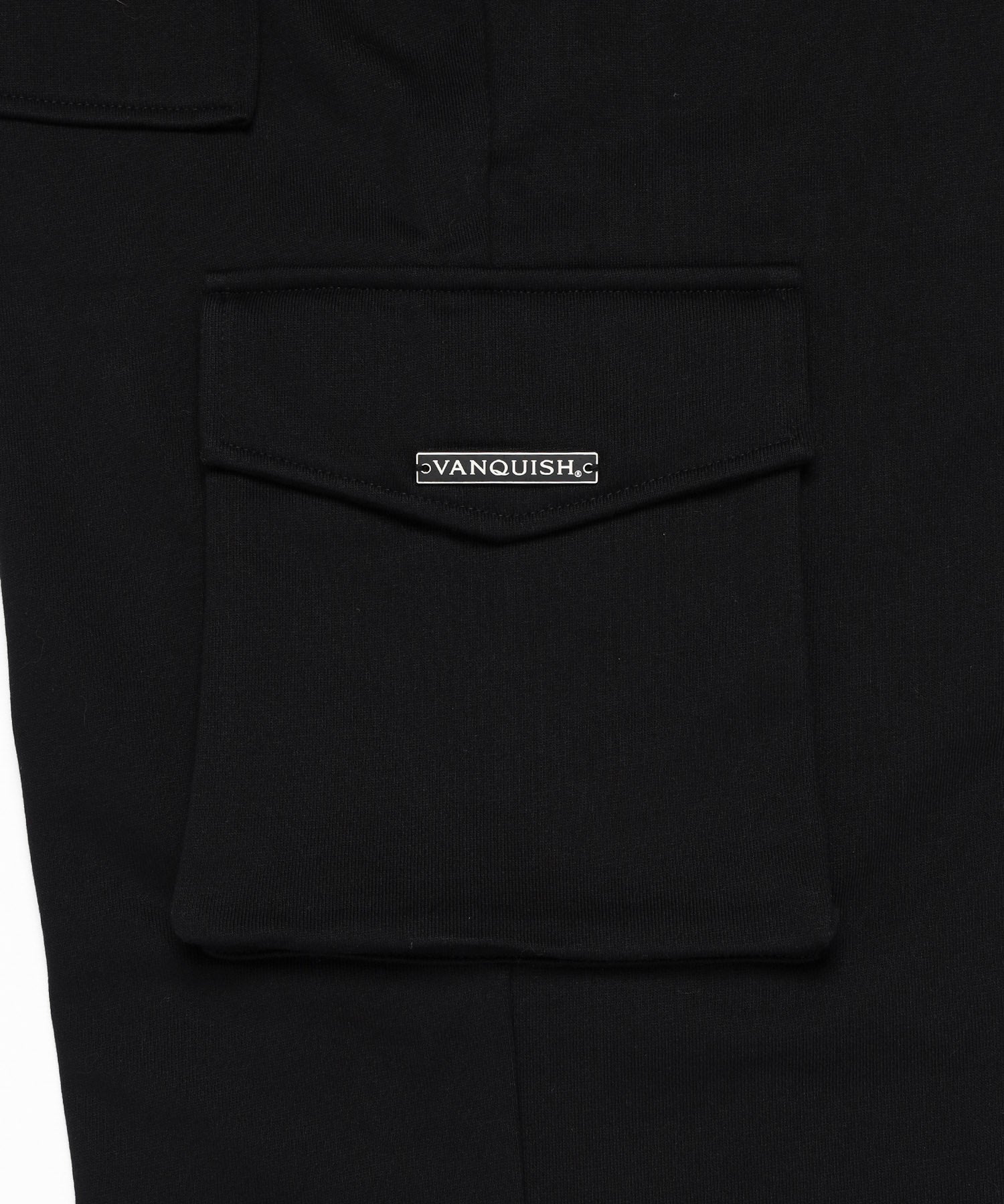 大容量サイドポケット付きで実用性も抜群。右側サイドポケットには“VANQUISH”メタルプレートを配置。左ヒザ下にはボディーカラーと同色で“VANQUISH”ロゴをプリント。