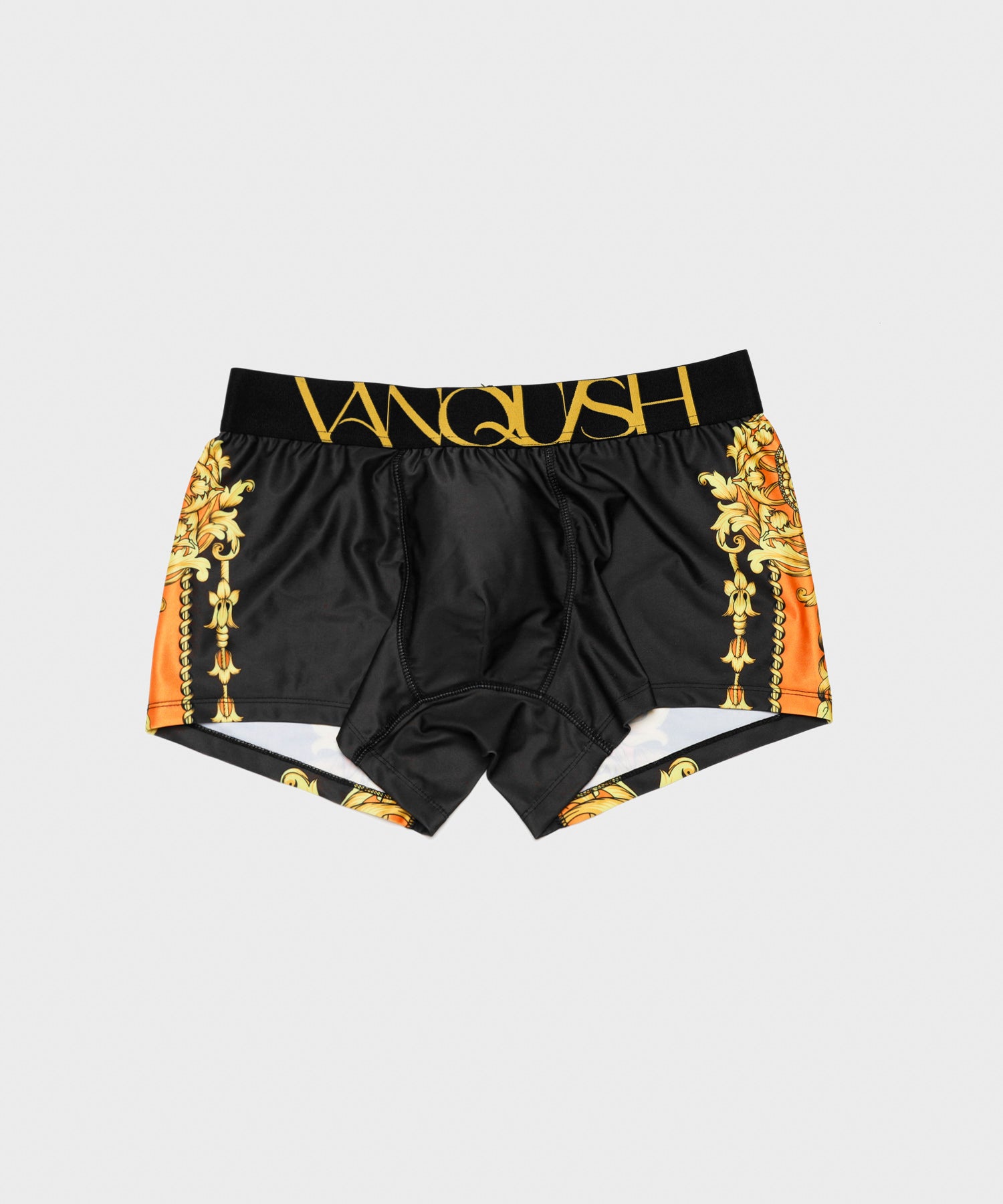 オレンジを差し色に効かせたゴールドバロック柄が華やかに映える、インパクト抜群の2色展開。