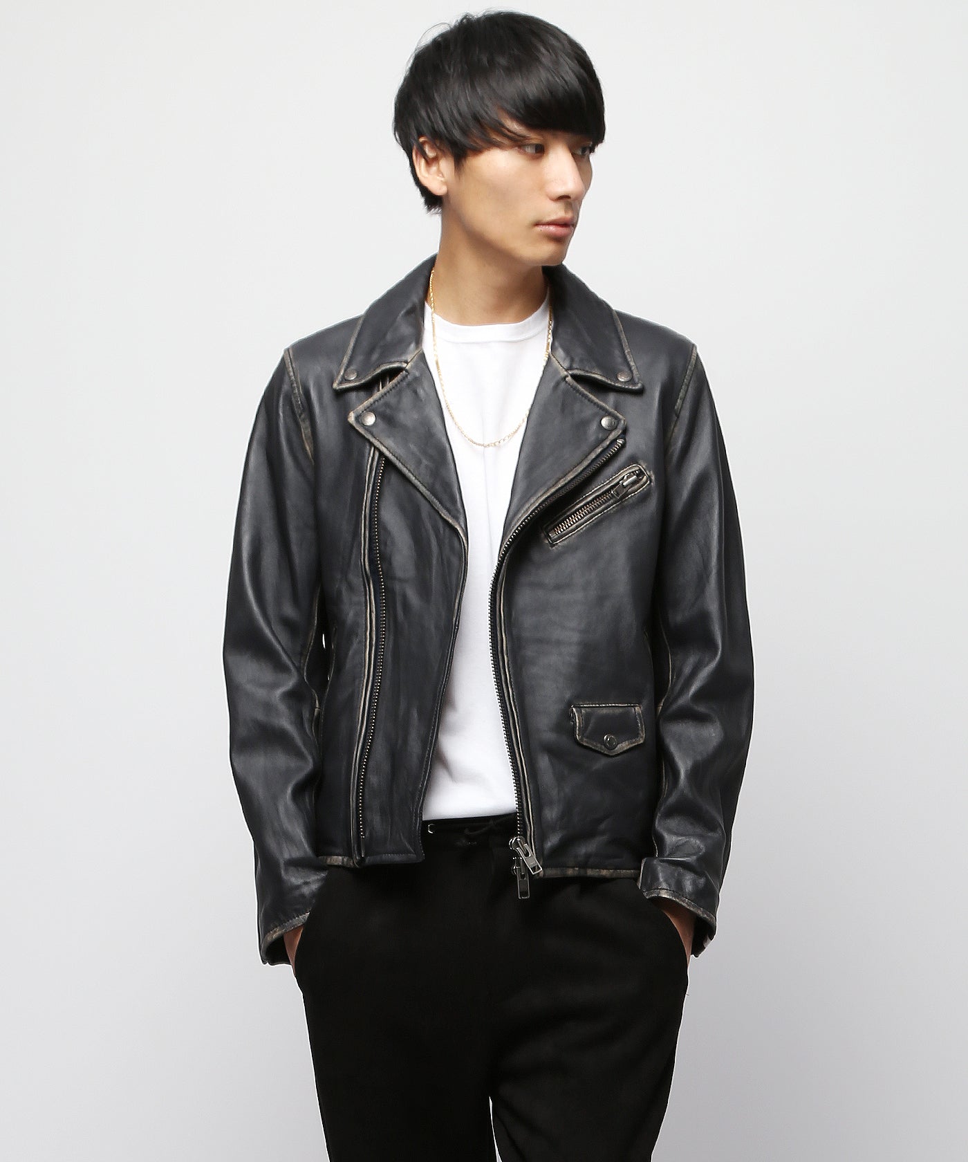 フロントジップはダブルジップを採用。羽織るだけで格好良くキマるワードローブに一枚は持ってたい冬の定番アイテムながらも、雰囲気のある仕上がりで周りと差がつく一枚です。