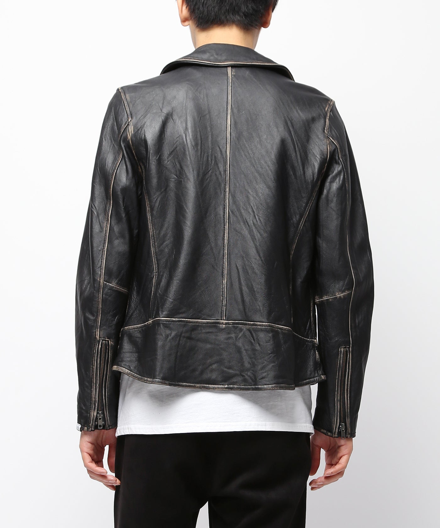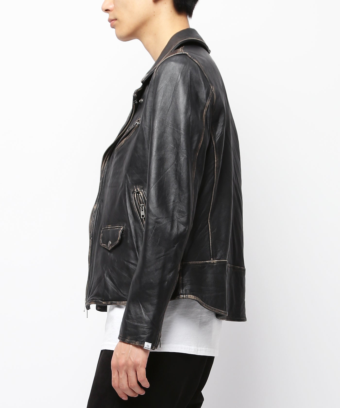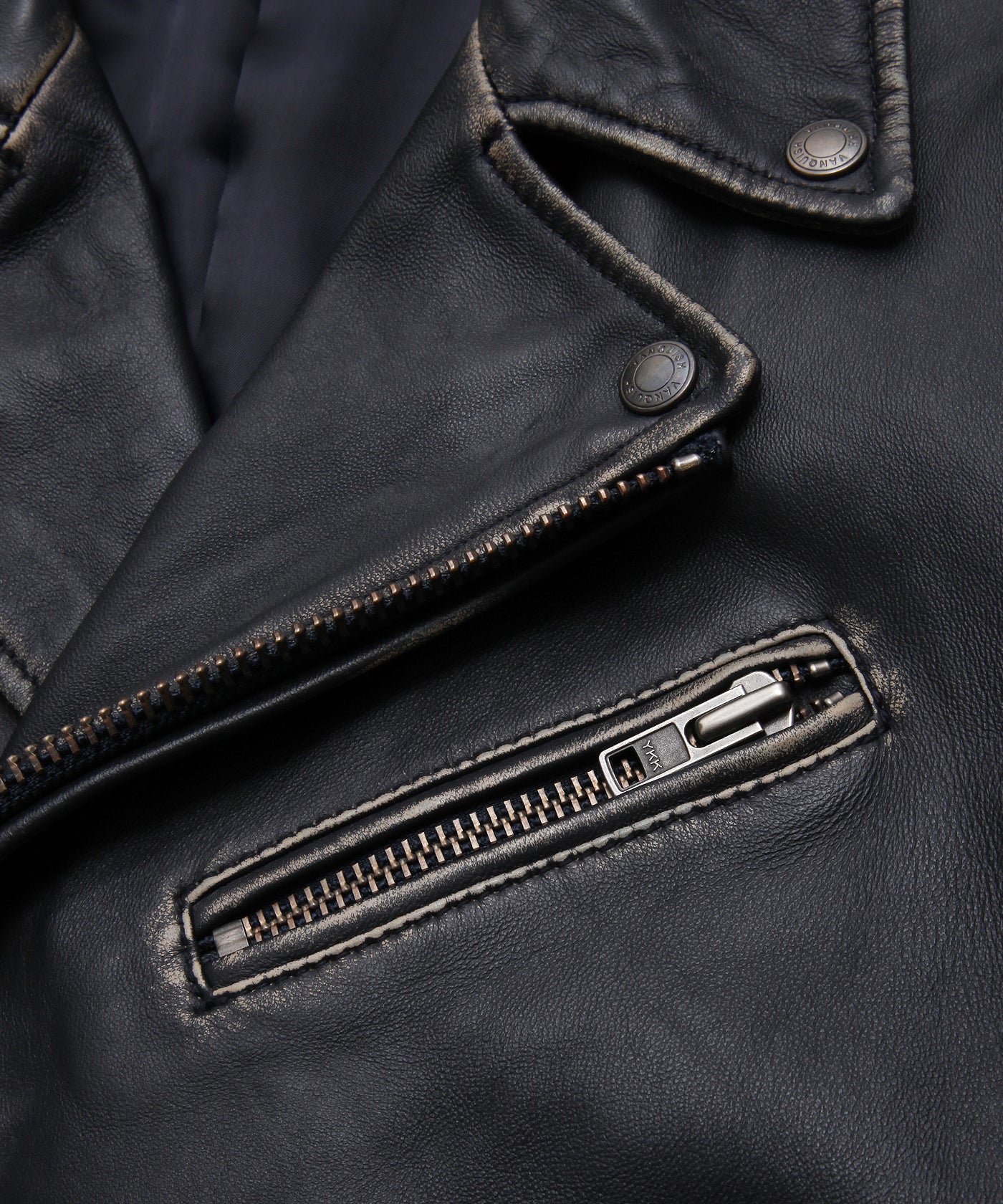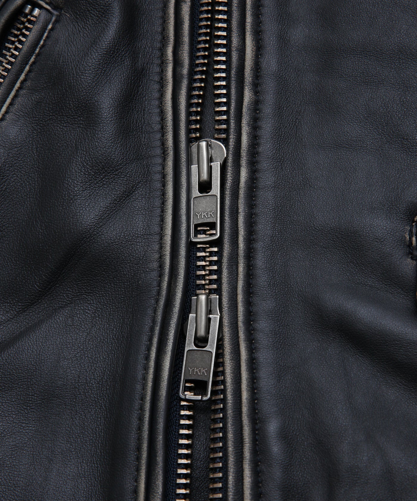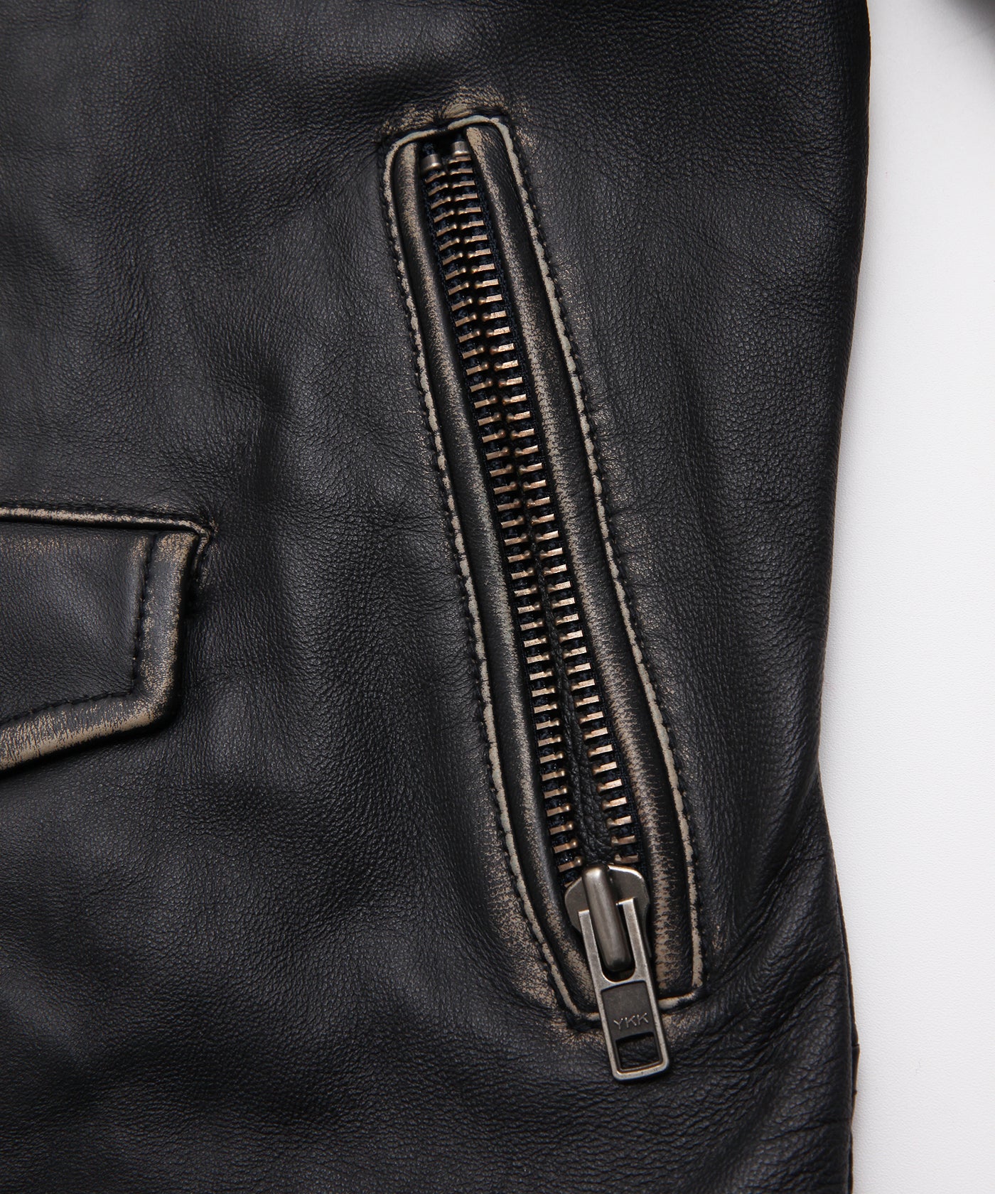 ディテール:キメ細かさ、柔らかさが特徴的なシープレザーを使用したダブルライダース。