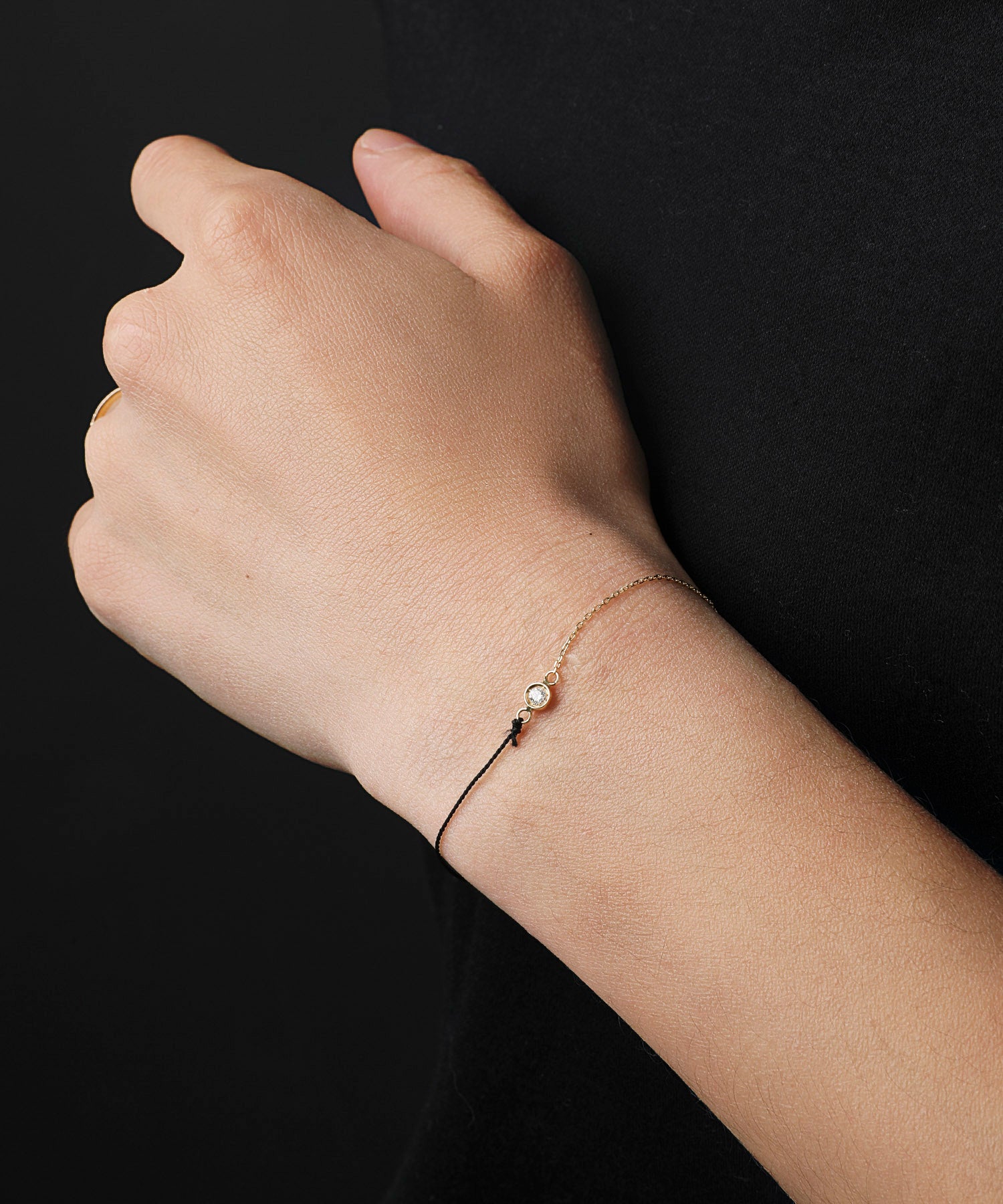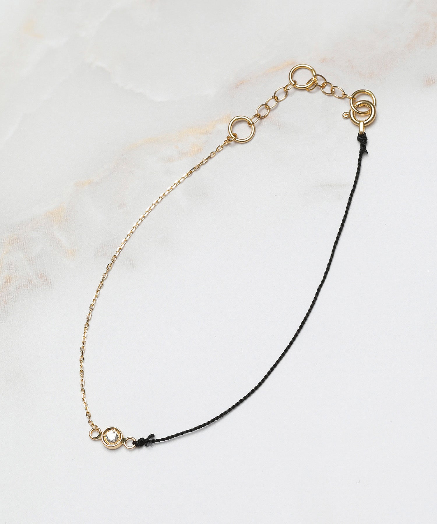 K18とシルクのチェーンが上品なデザイン。トップにダイヤモンドを埋め込むことで手首をより華やかになります。