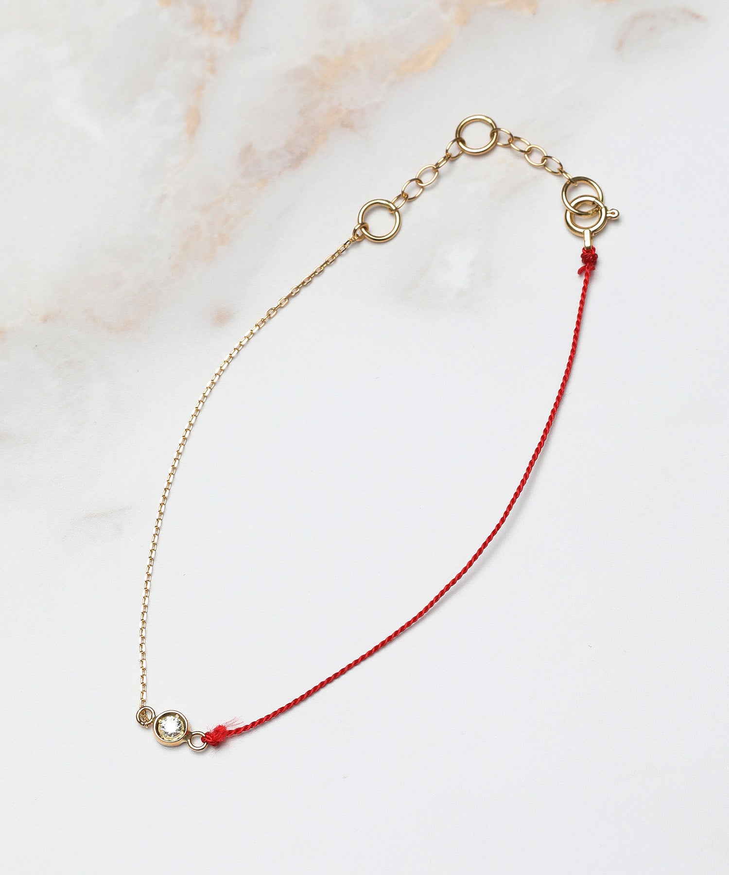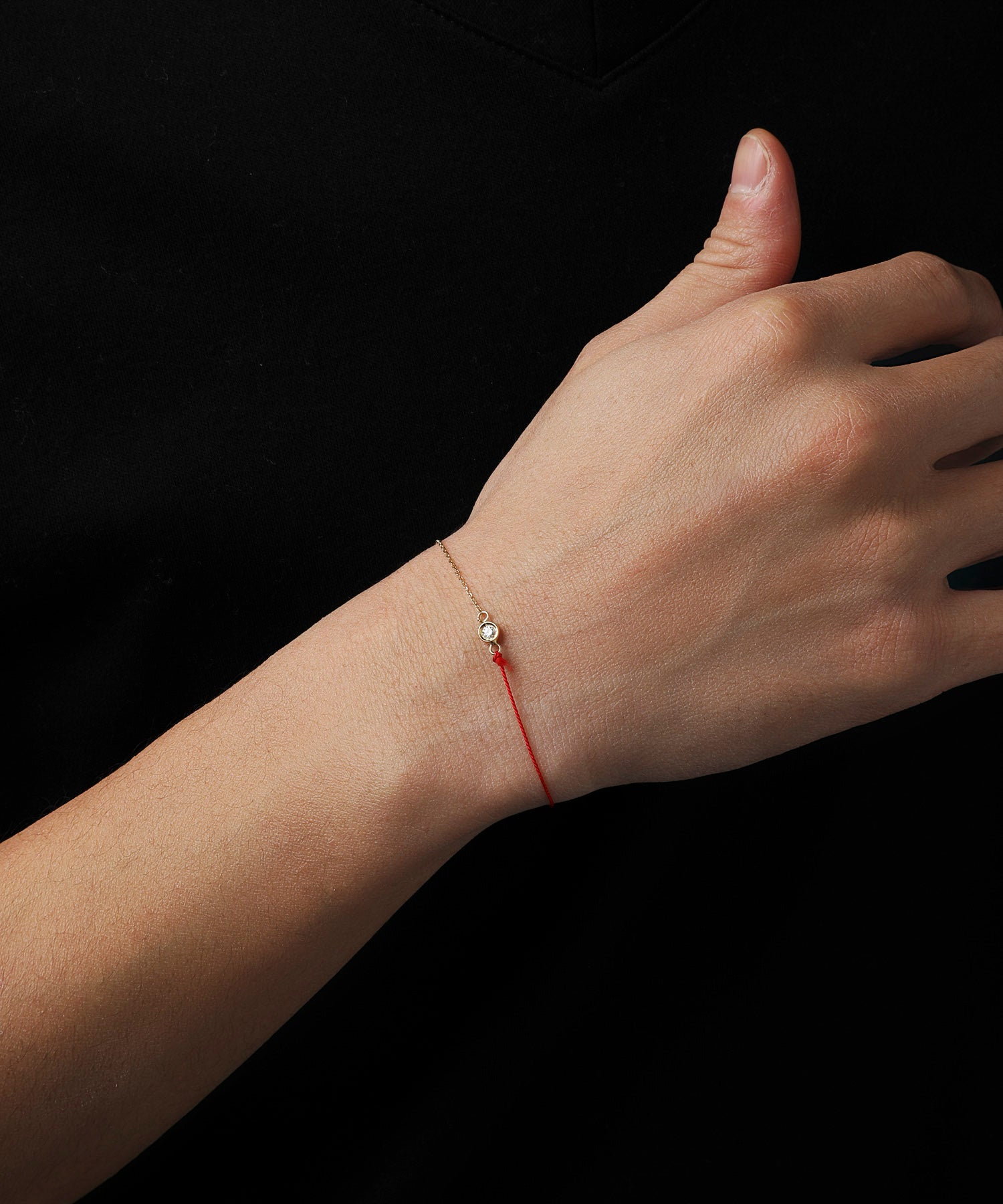 K18とシルクのチェーンが上品なデザイン。トップにダイヤモンドを埋め込むことで手首をより華やかになります。