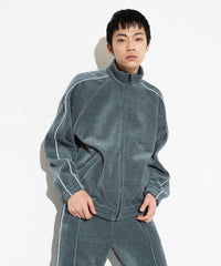 組下のトラックパンツと合わせて、セットアップでの着用も可能。