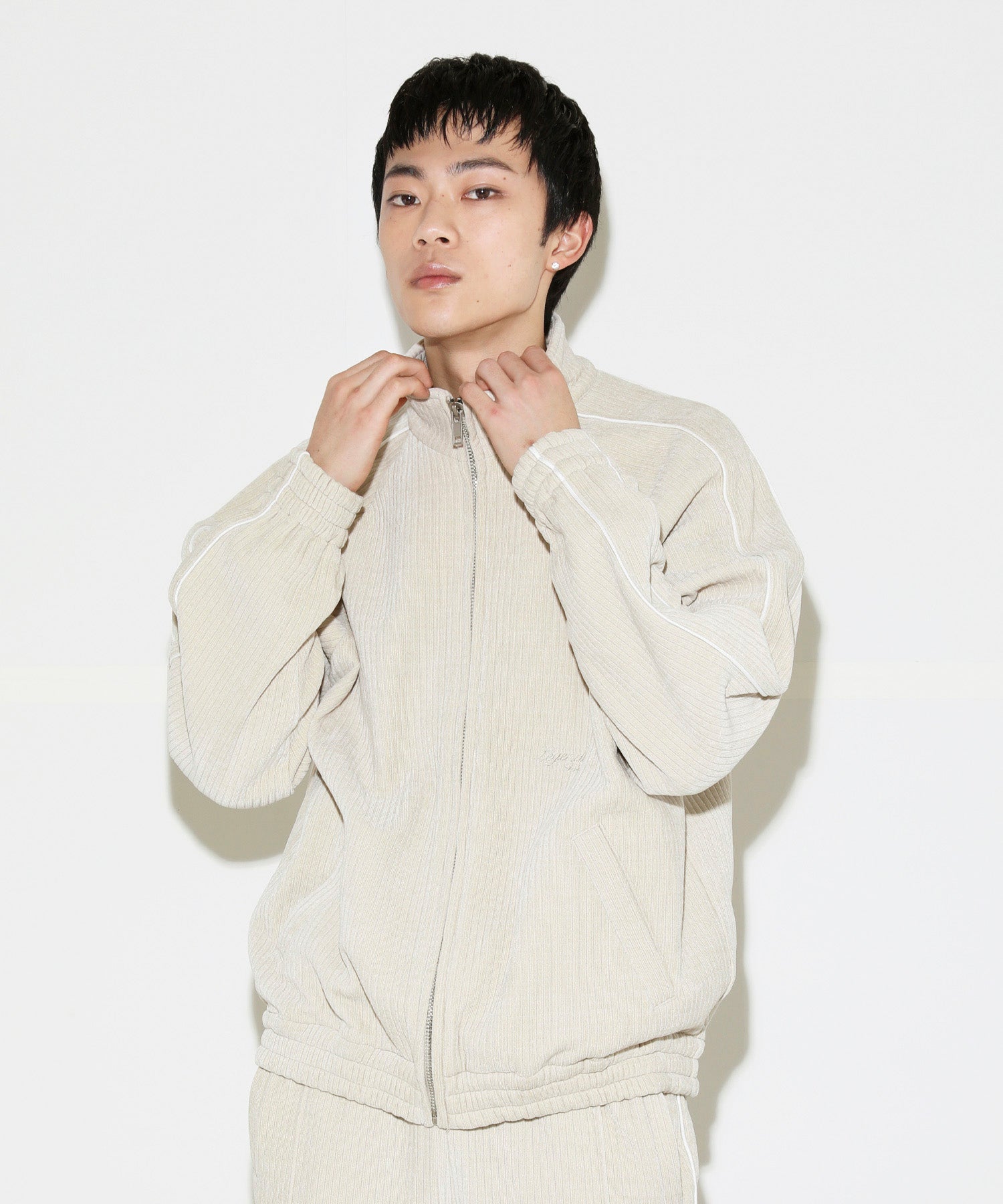 コーデュロイベロア素材を使ったトラックジャケット。
