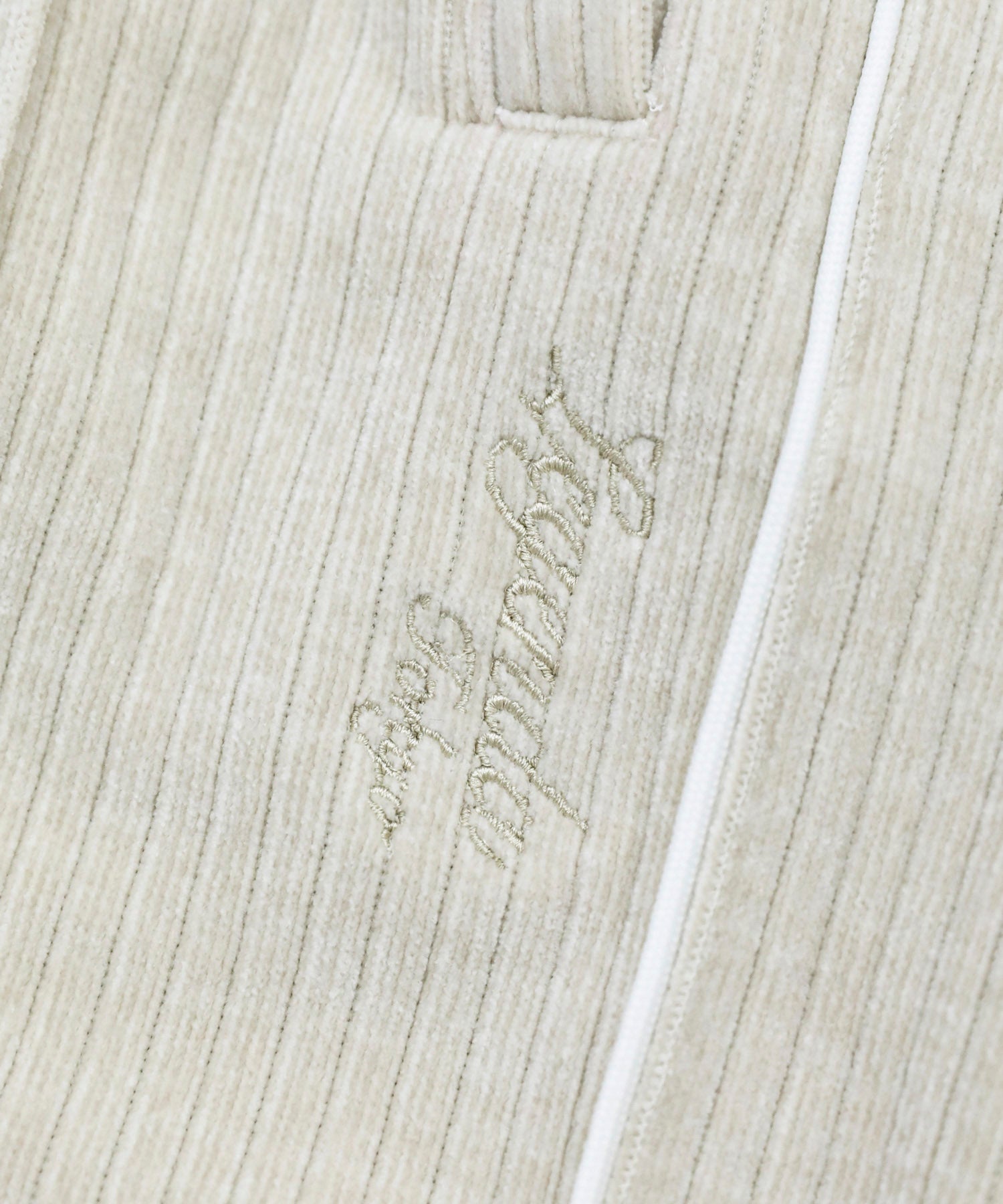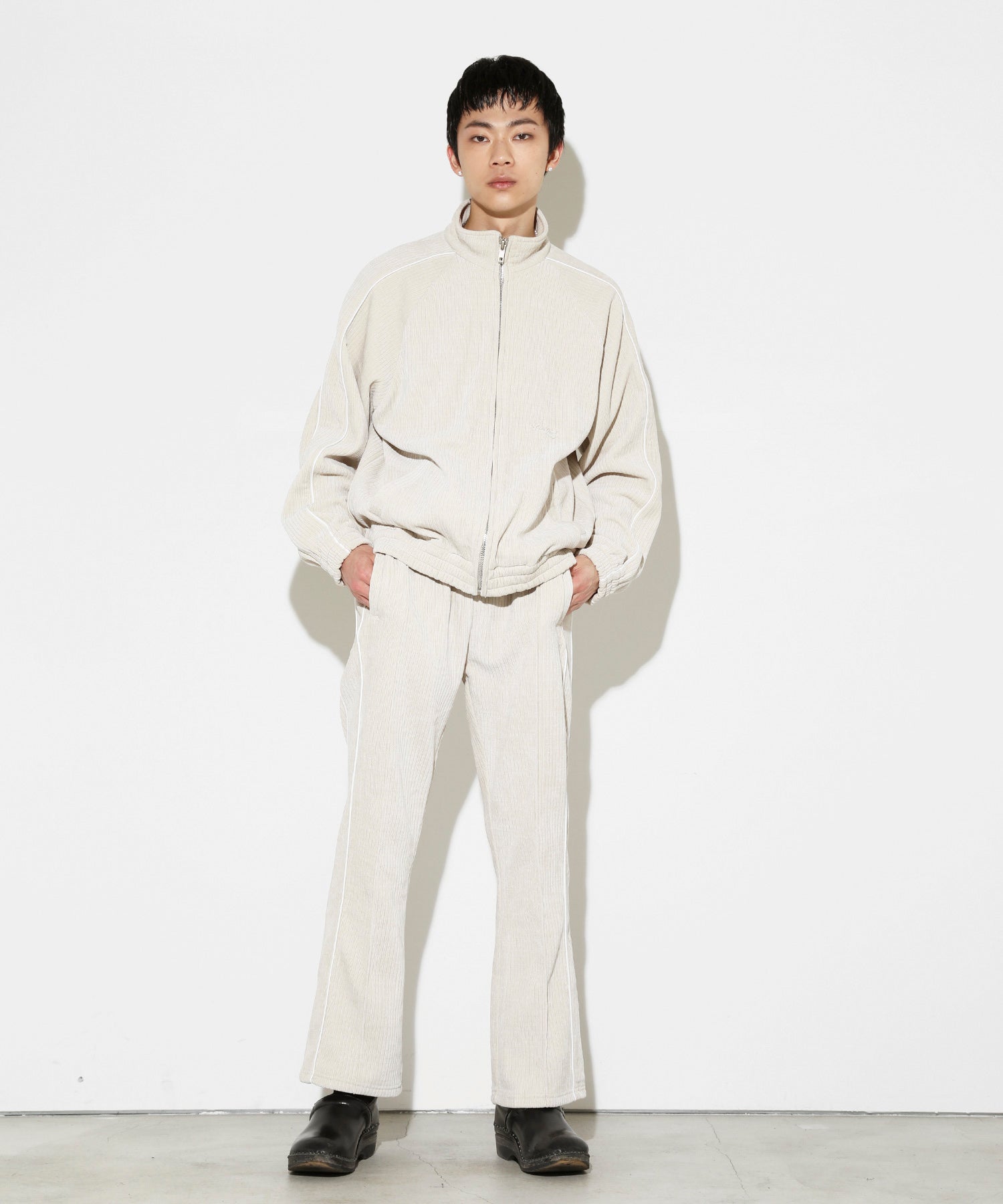 組上のトラックジャケットと合わせて、セットアップでの着用も可能。