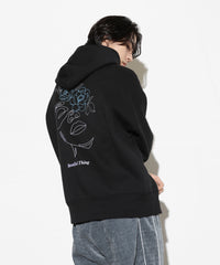LEGENDAオリジナルのLine Artをバックに配したデザイン。 フロントロゴ・バックのグラフィック部分は全て刺繍で表現。 リラックス感のある見た目ながらも体のラインに沿う、すっきりとしたシルエットに仕上げました。絶妙なサイズ感が上質なルックスに。 10ozの裏起毛生地を使用。 ユニセックスで着用可能です。