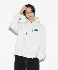 Lipモチーフロゴと切り替えデザインが特徴的なパーカー。