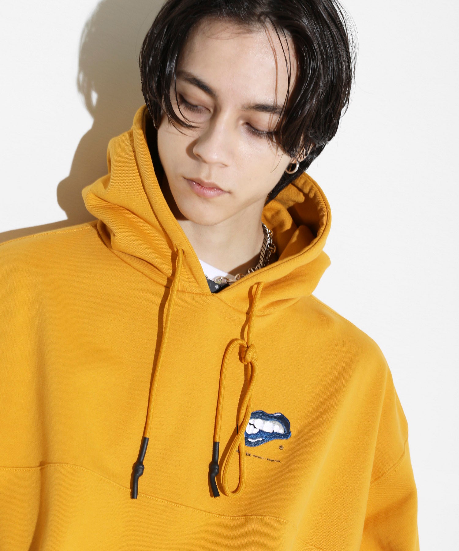 広めにとった身幅と絶妙な肩落ち具合が特徴的なオーバーサイズシルエット。