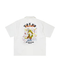LEGENDA Souvenirシリーズ最新作。 スカジャンからインスパイアを得たグラフィックがバックに大きめに刺繍で表現されたシャツ。 フロントは両胸に刺繍しアクセントをプラス。 日本文化と現代ファッションが融合した一枚です。 落ち感のあるしっかりとした生地で着心地の良い仕上がりになっています。 ユニセックスで着用いただけます。