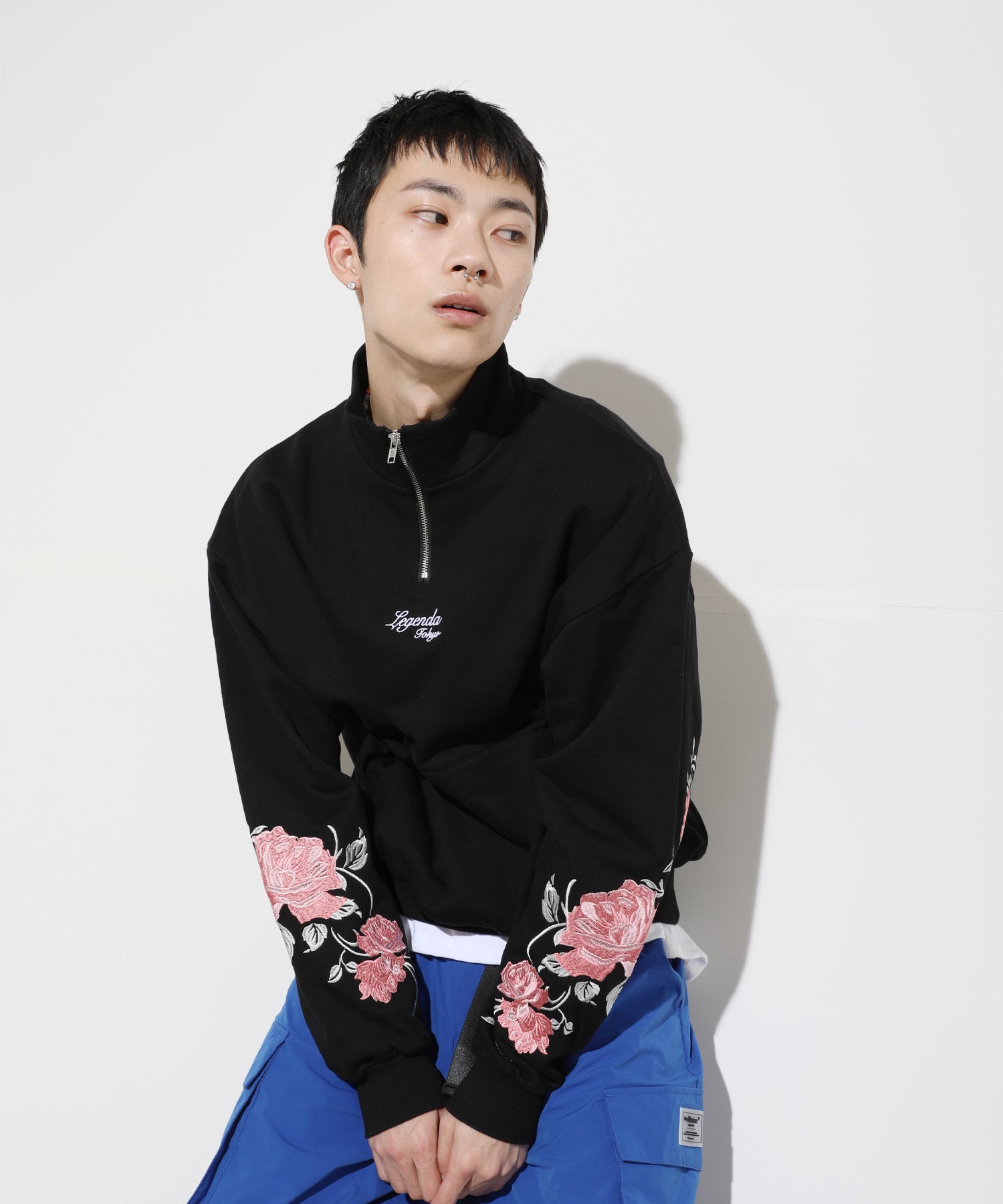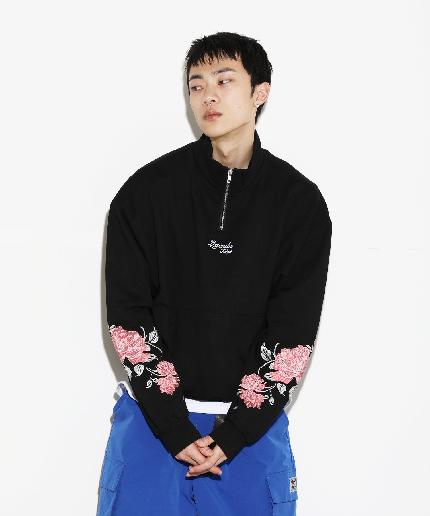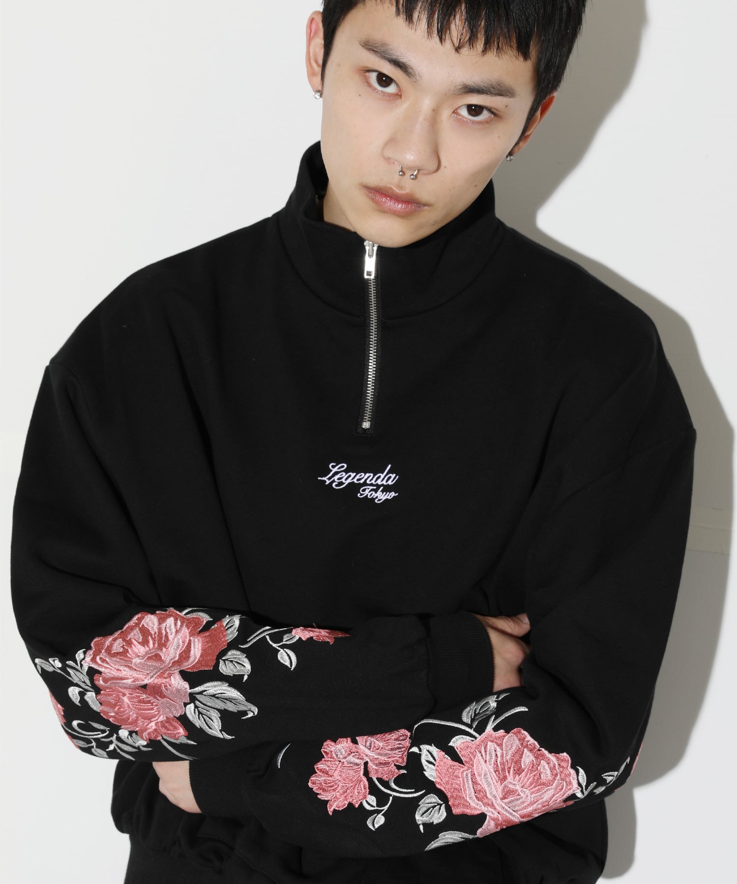 袖元に新デザインのRose刺繍を入れたハーフジップトレーナー。