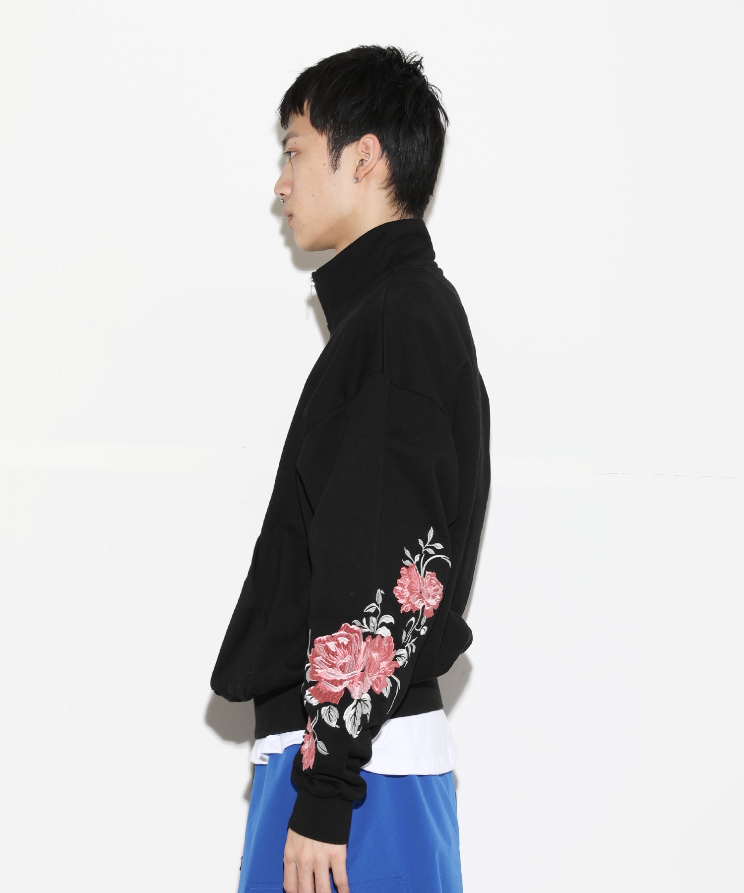 New Rose Embroidery Half-Zip Sweat[LEC1160]
