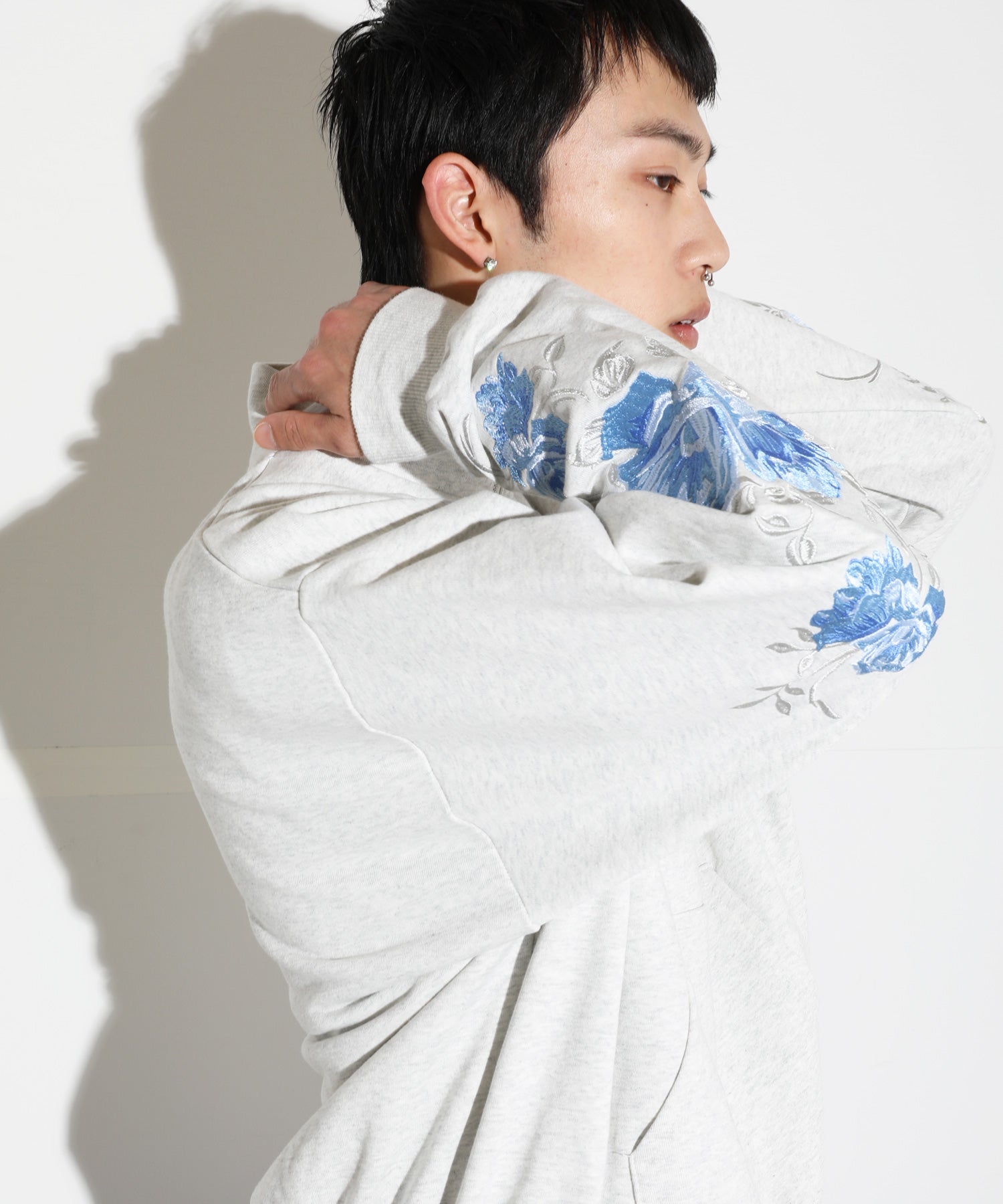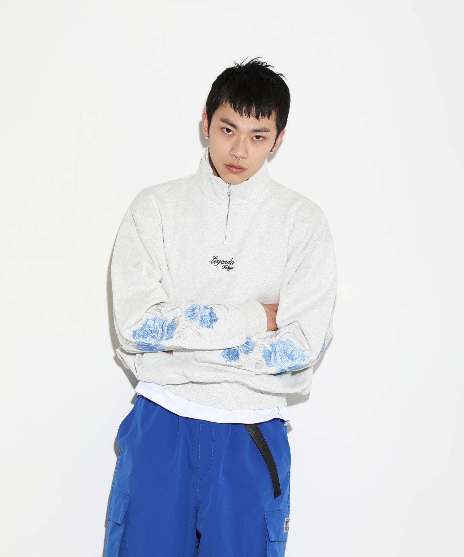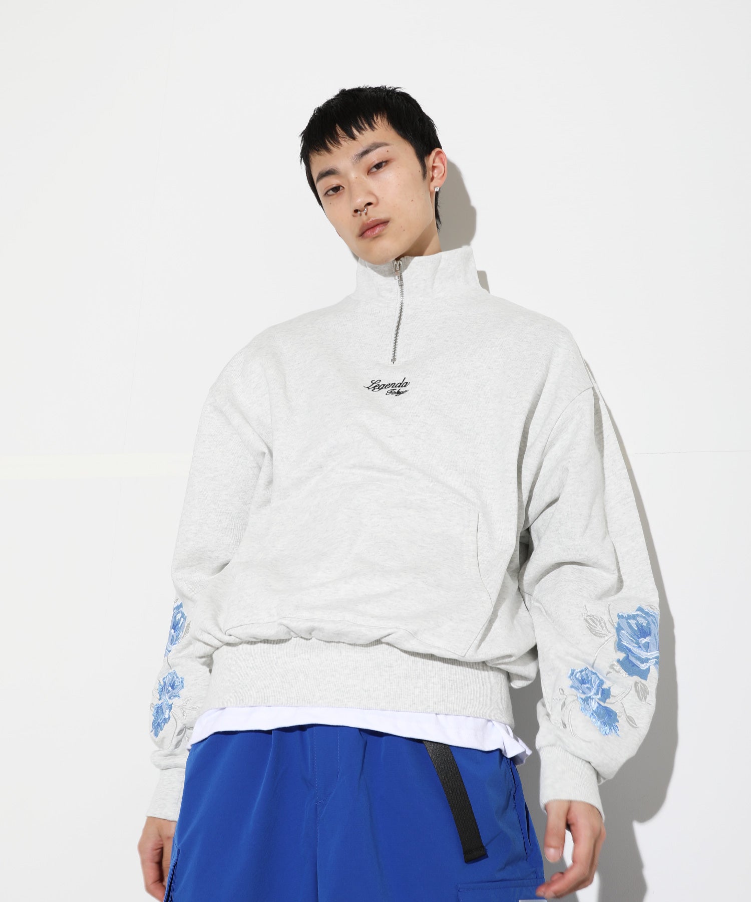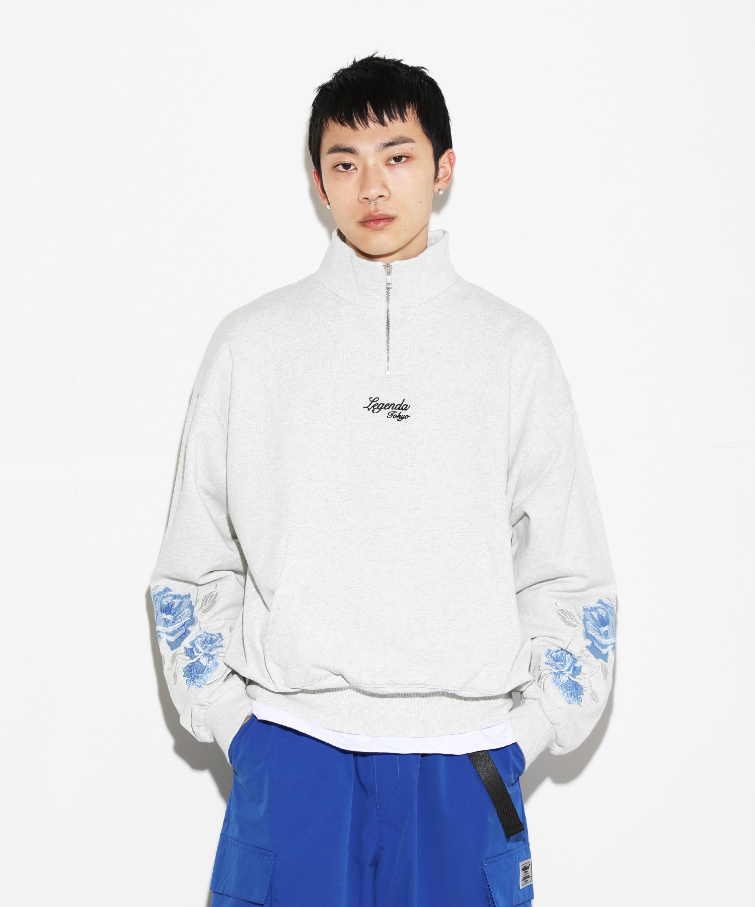 袖元に新デザインのRose刺繍を入れたハーフジップトレーナー。