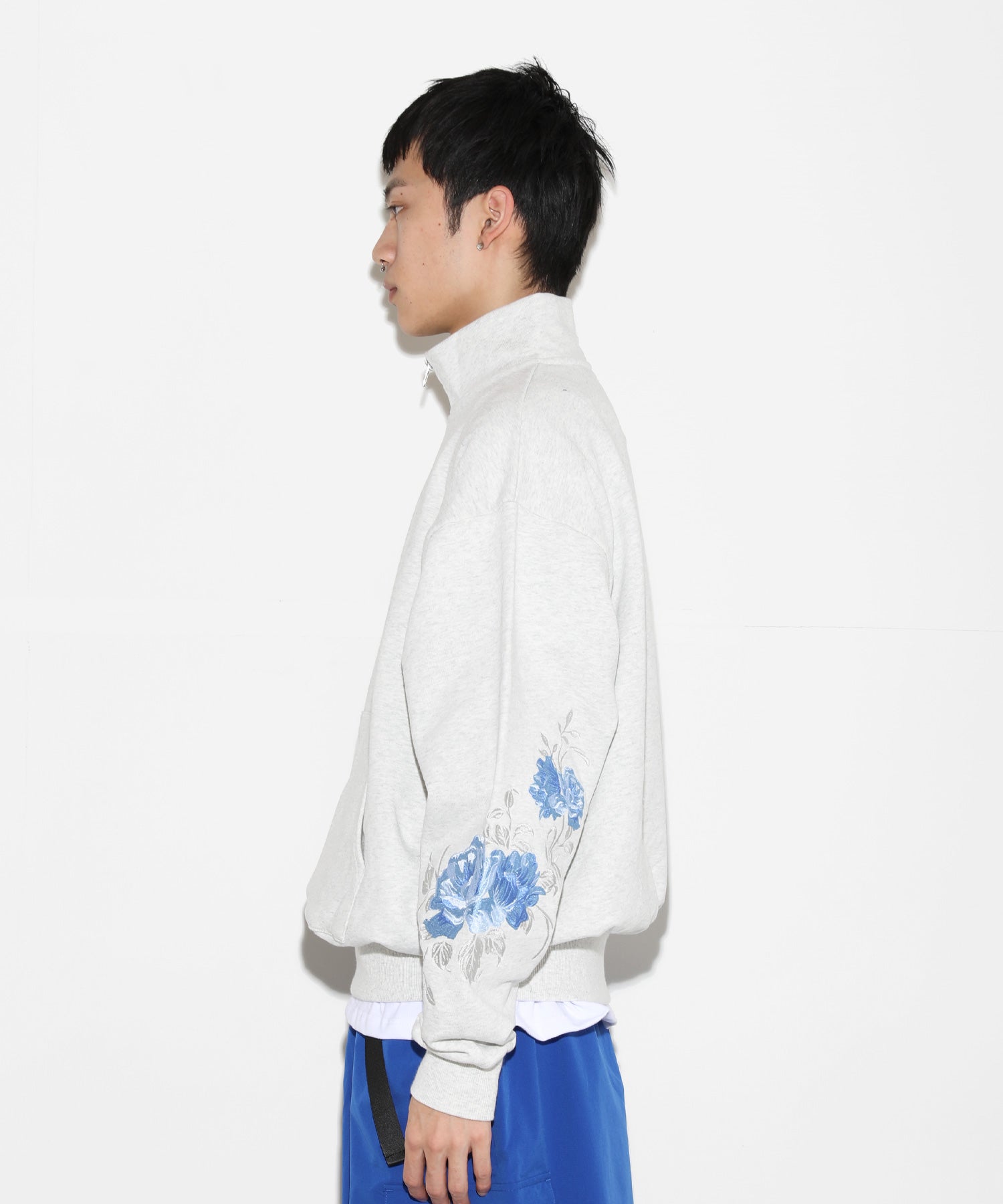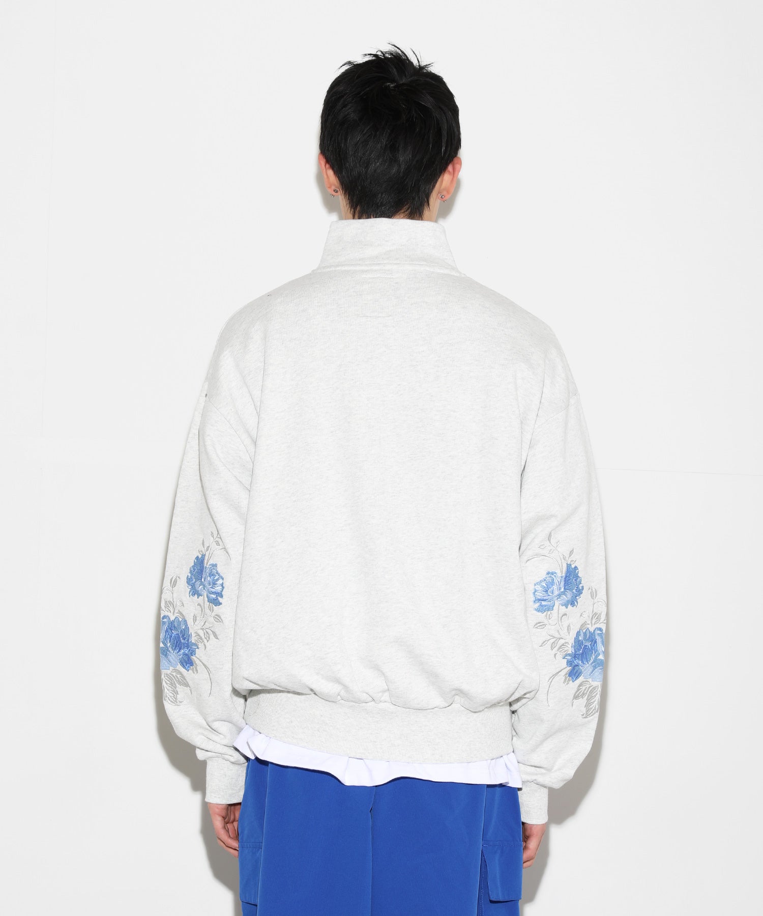 New Rose Embroidery Half-Zip Sweat[LEC1160]